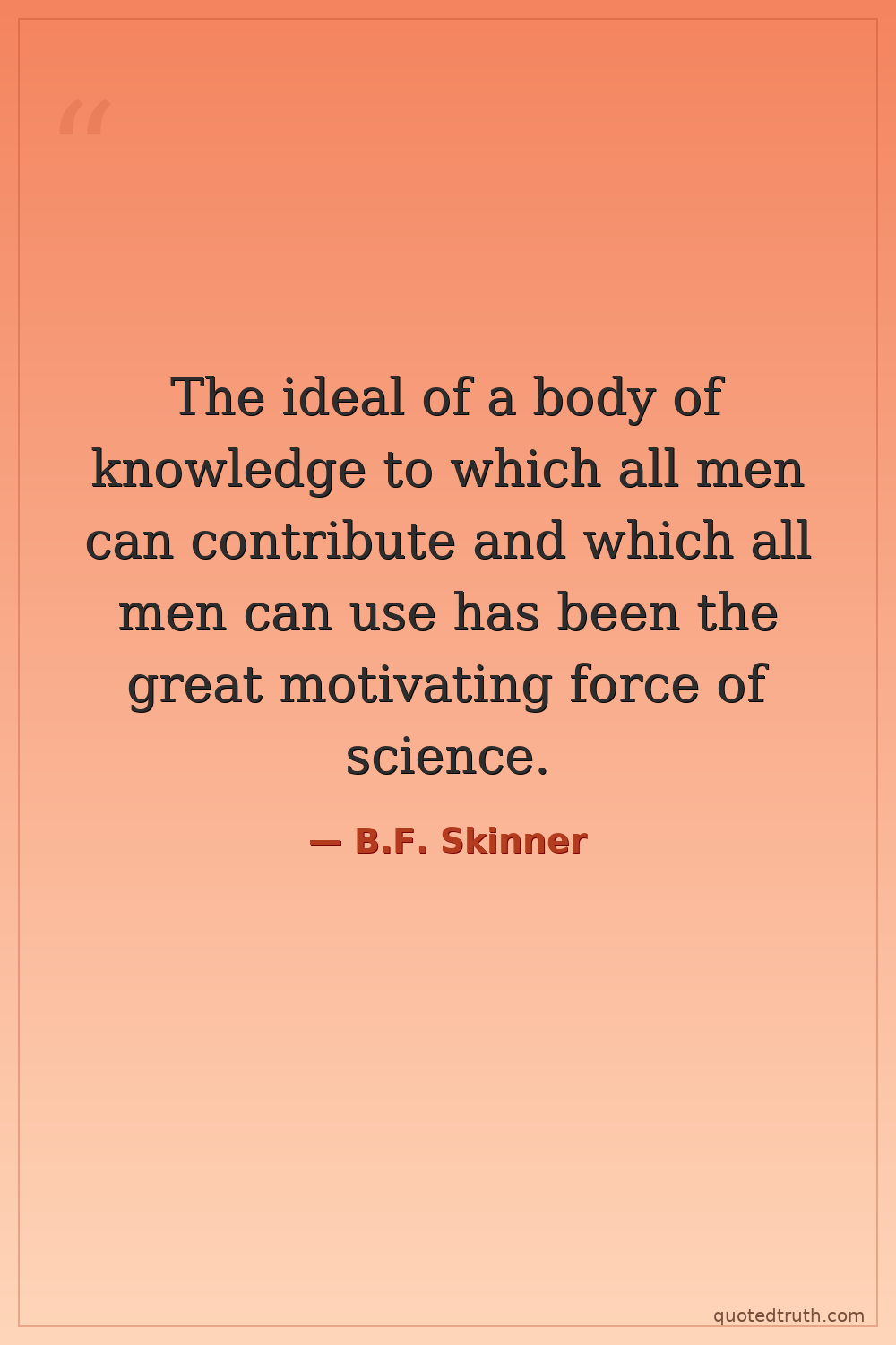 The ideal of a body of knowledge to which all men can contribute and which all men can use has been the great motivating force of science.