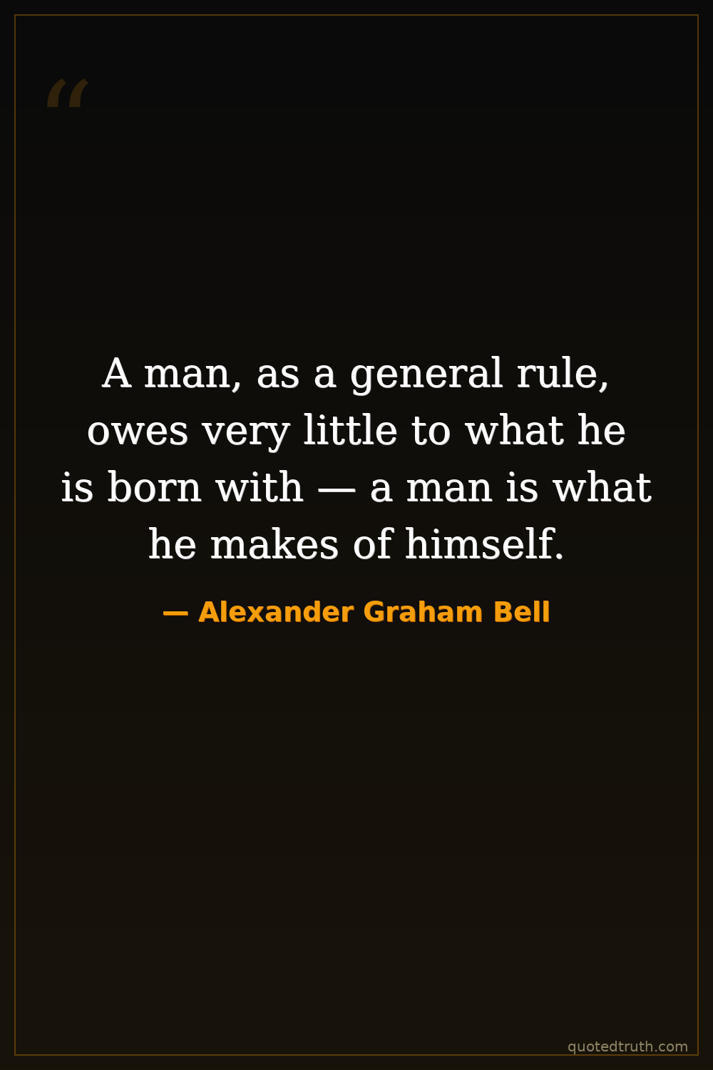 A man, as a general rule, owes very little to what he is born with — a man is what he makes of himself.