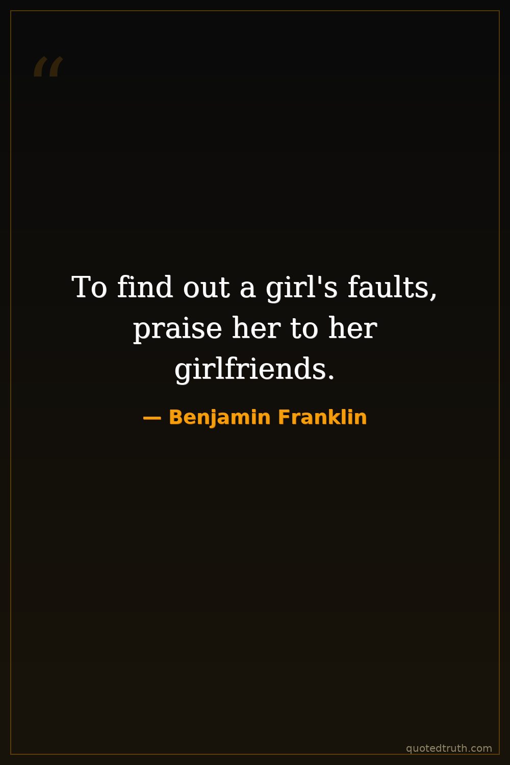 To find out a girl's faults, praise her to her girlfriends.