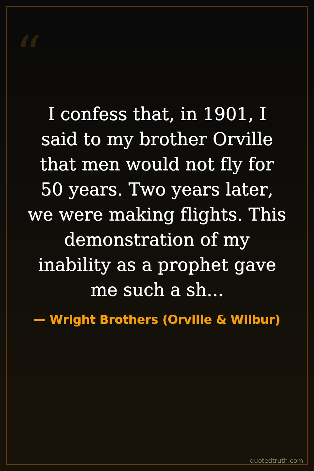 I confess that, in 1901, I said to my brother Orville that men would not fly for 50 years. Two years later, we were making flights. This demonstration of my inability as a prophet gave me such a shock that I have ever since refrained from all prediction.