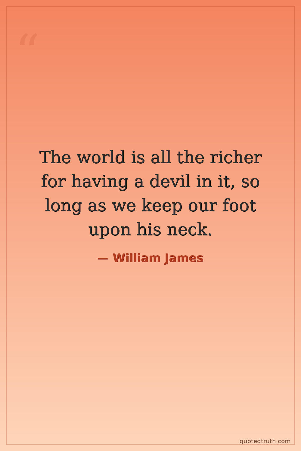 The world is all the richer for having a devil in it, so long as we keep our foot upon his neck.