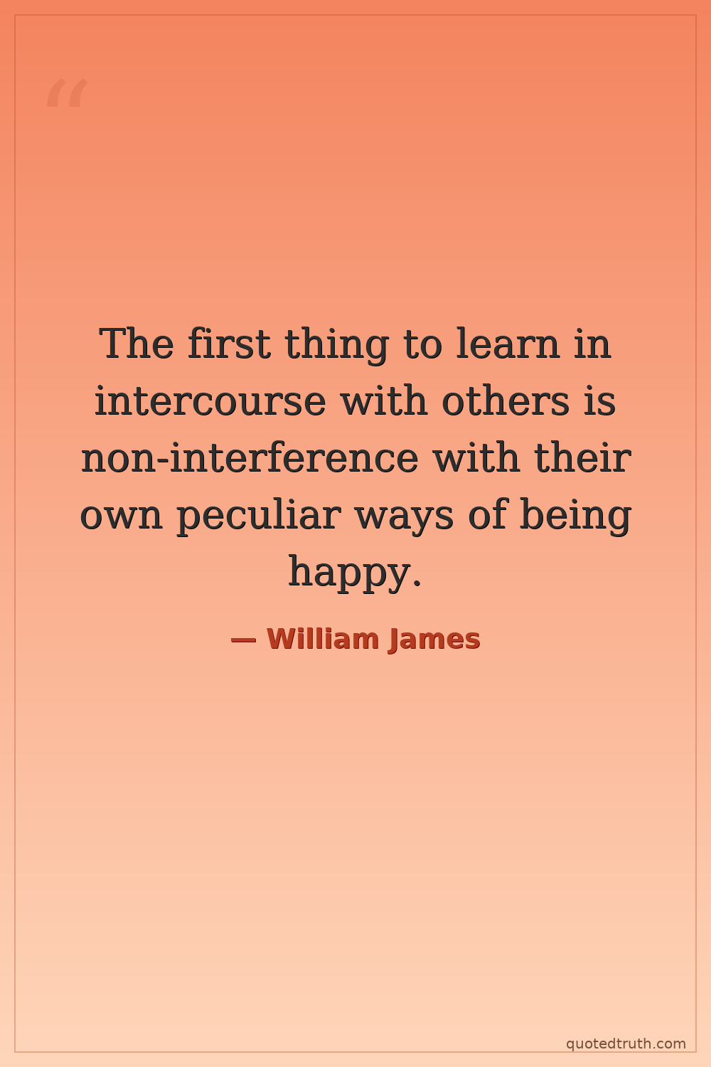 The first thing to learn in intercourse with others is non-interference with their own peculiar ways of being happy.