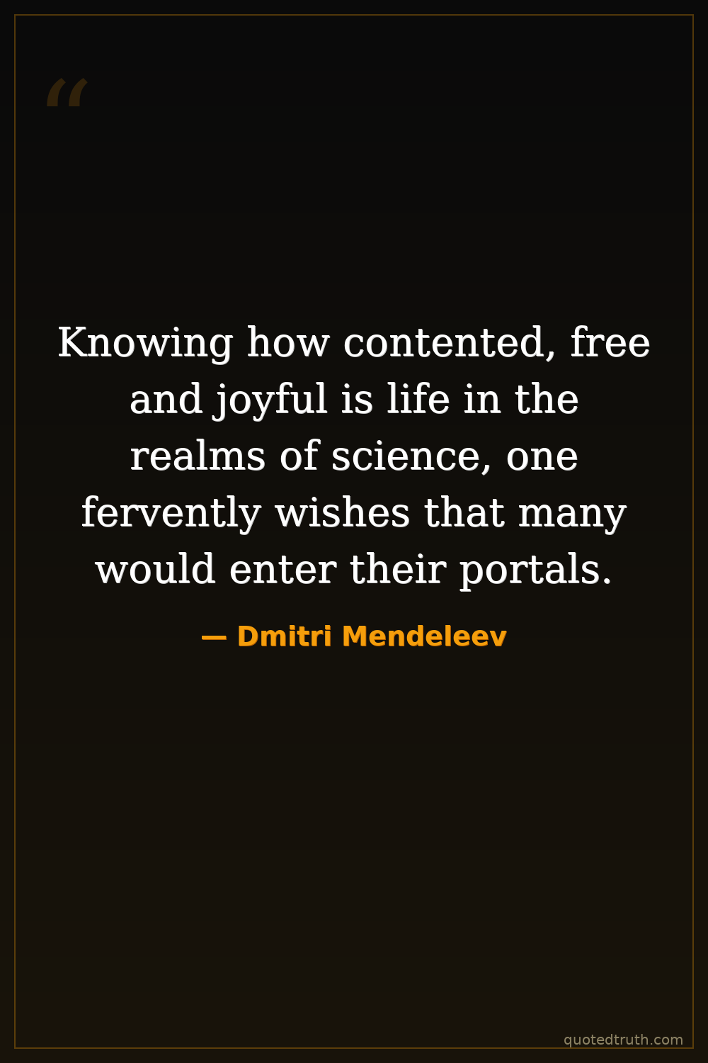 Knowing how contented, free and joyful is life in the realms of science, one fervently wishes that many would enter their portals.