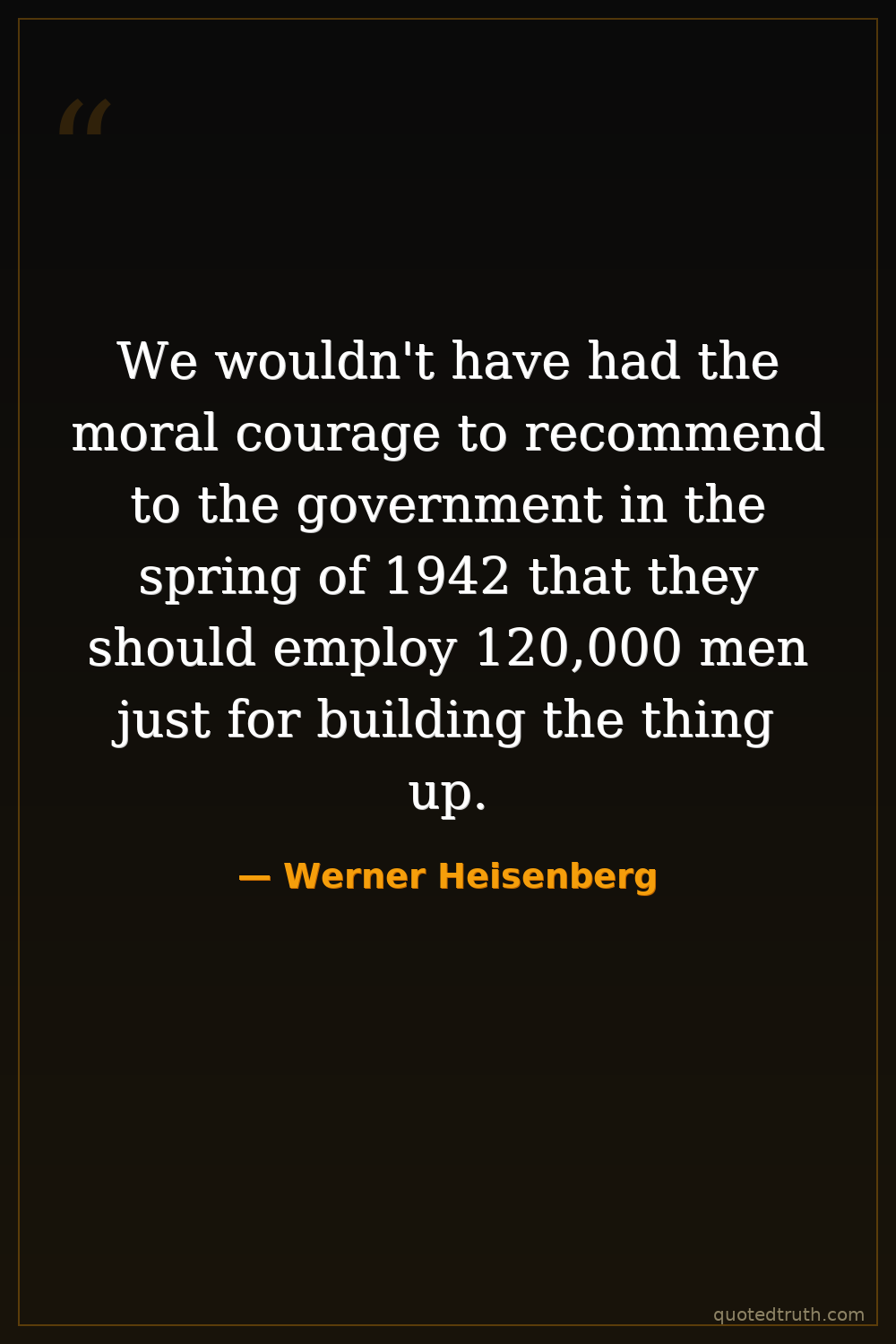 We wouldn't have had the moral courage to recommend to the government in the spring of 1942 that they should employ 120,000 men just for building the thing up.
