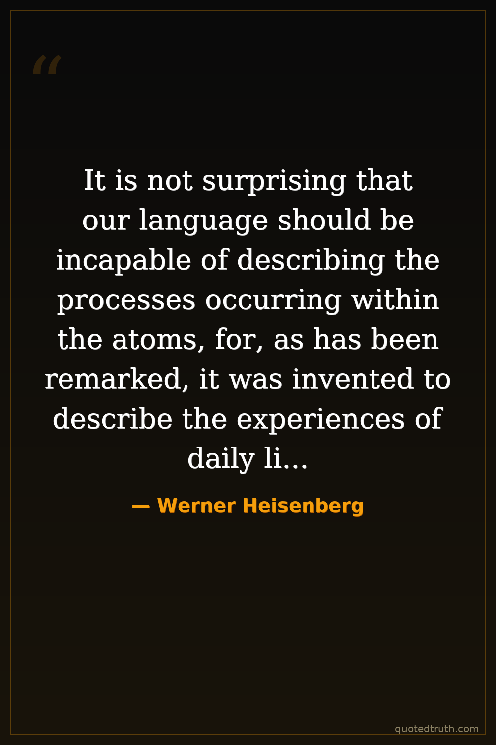 It is not surprising that our language should be incapable of describing the processes occurring within the atoms, for, as has been remarked, it was invented to describe the experiences of daily life, and these consists only of processes involving exceedingly large numbers of atoms.