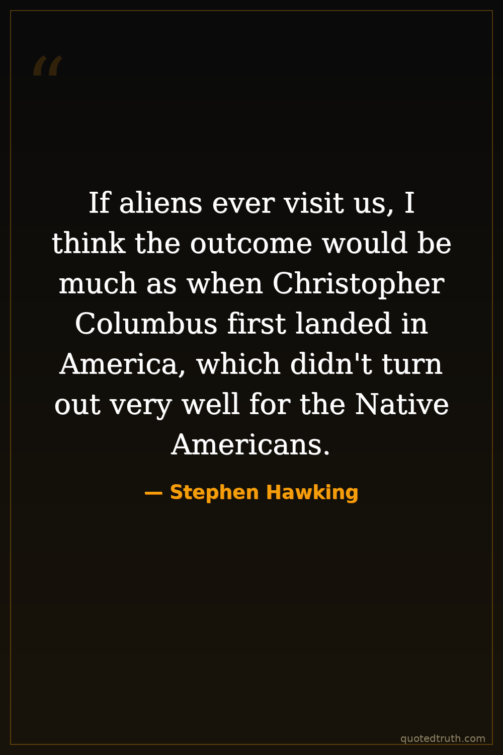 If aliens ever visit us, I think the outcome would be much as when Christopher Columbus first landed in America, which didn't turn out very well for the Native Americans.