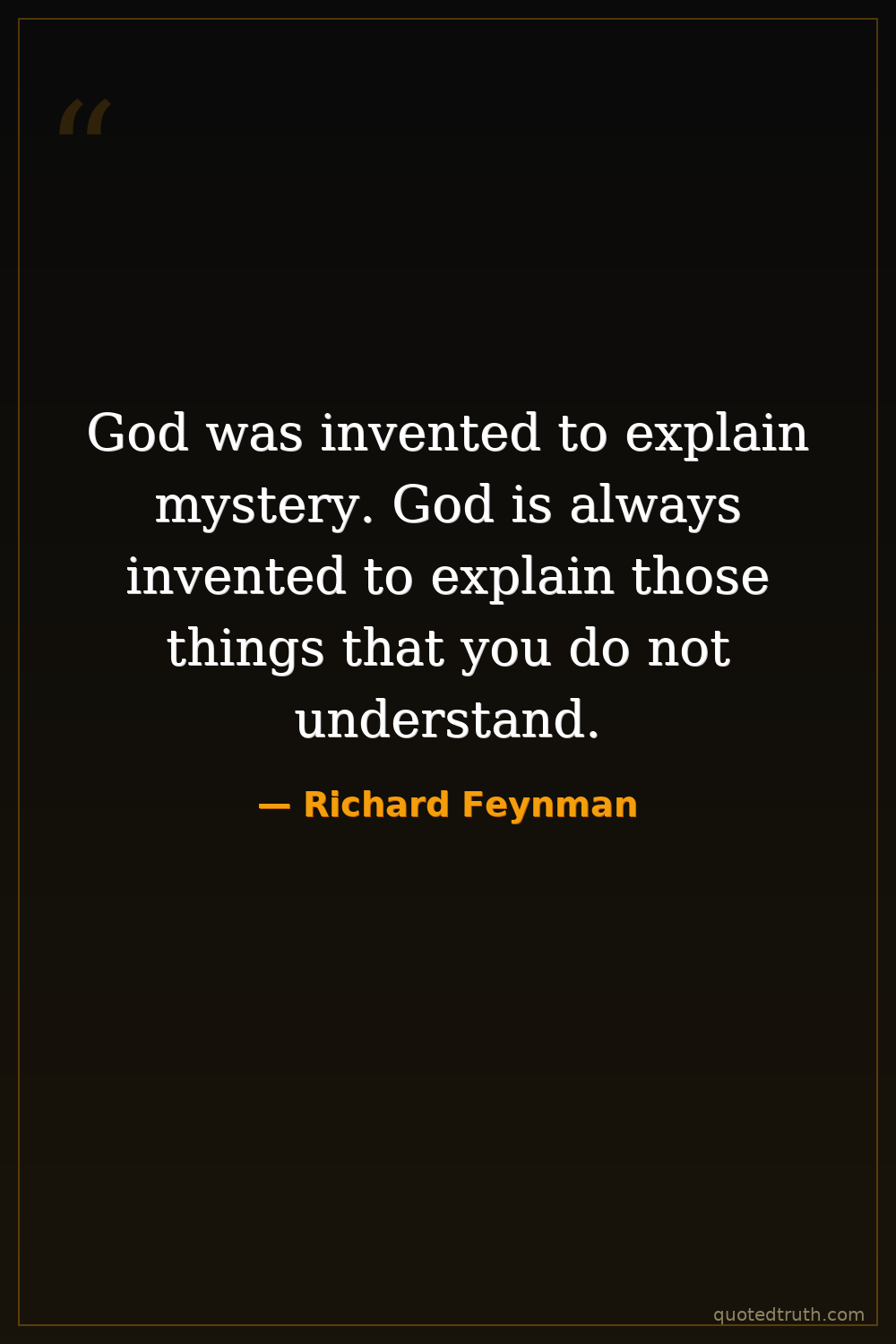 God was invented to explain mystery. God is always invented to explain those things that you do not understand.