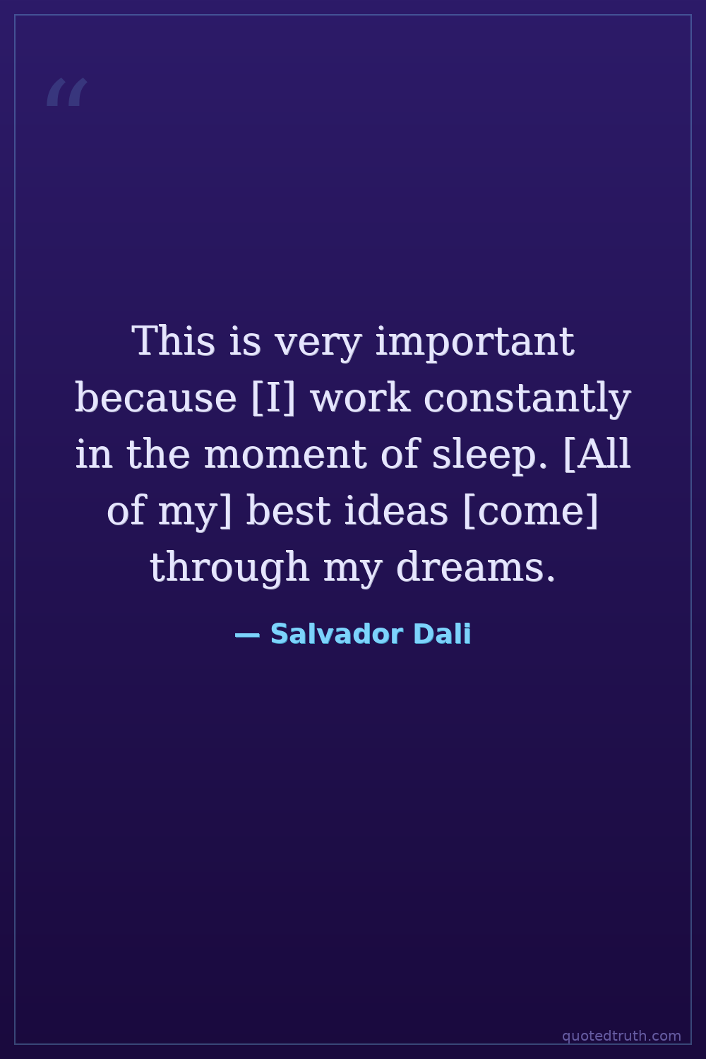 This is very important because [I] work constantly in the moment of sleep. [All of my] best ideas [come] through my dreams.