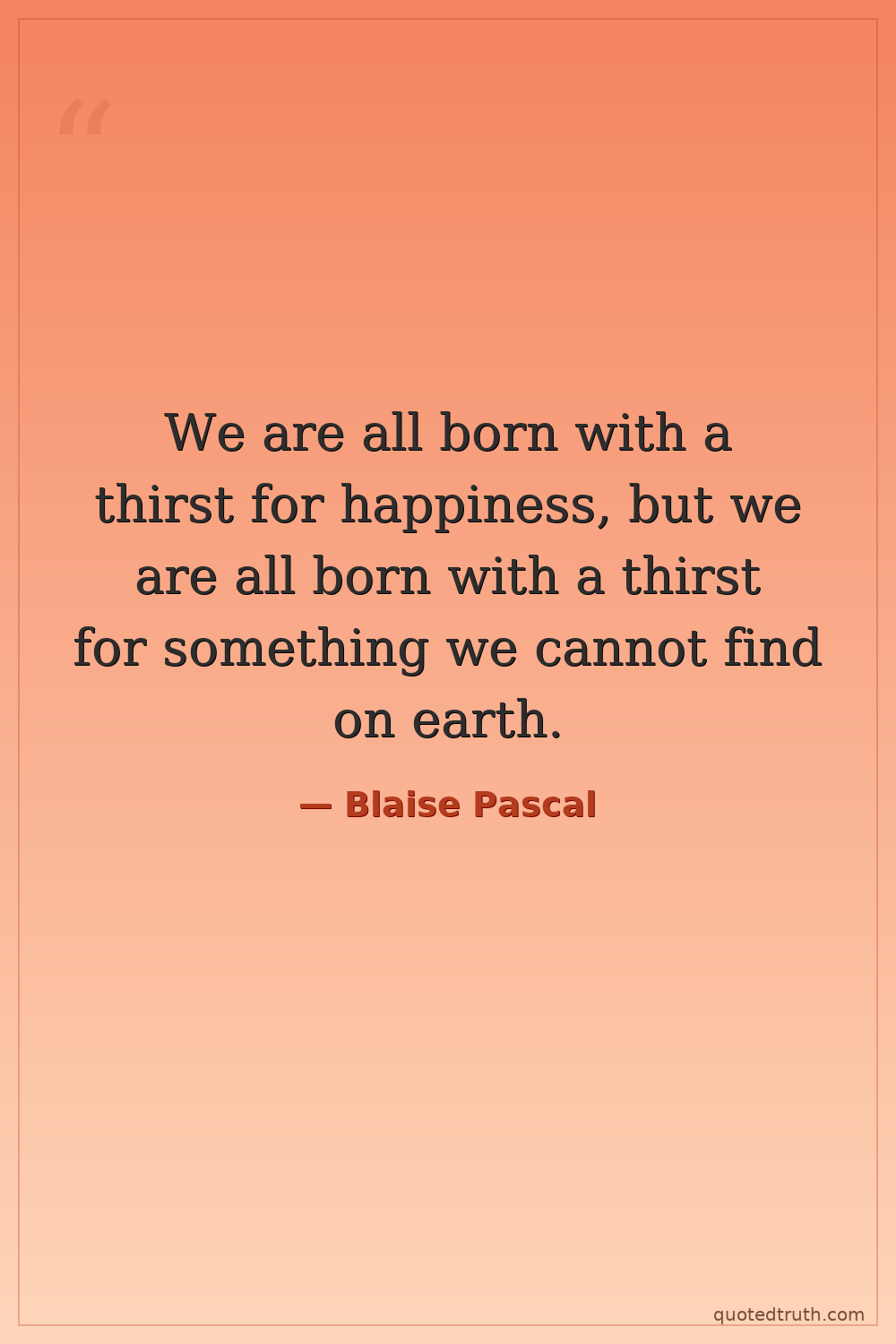 We are all born with a thirst for happiness, but we are all born with a thirst for something we cannot find on earth.