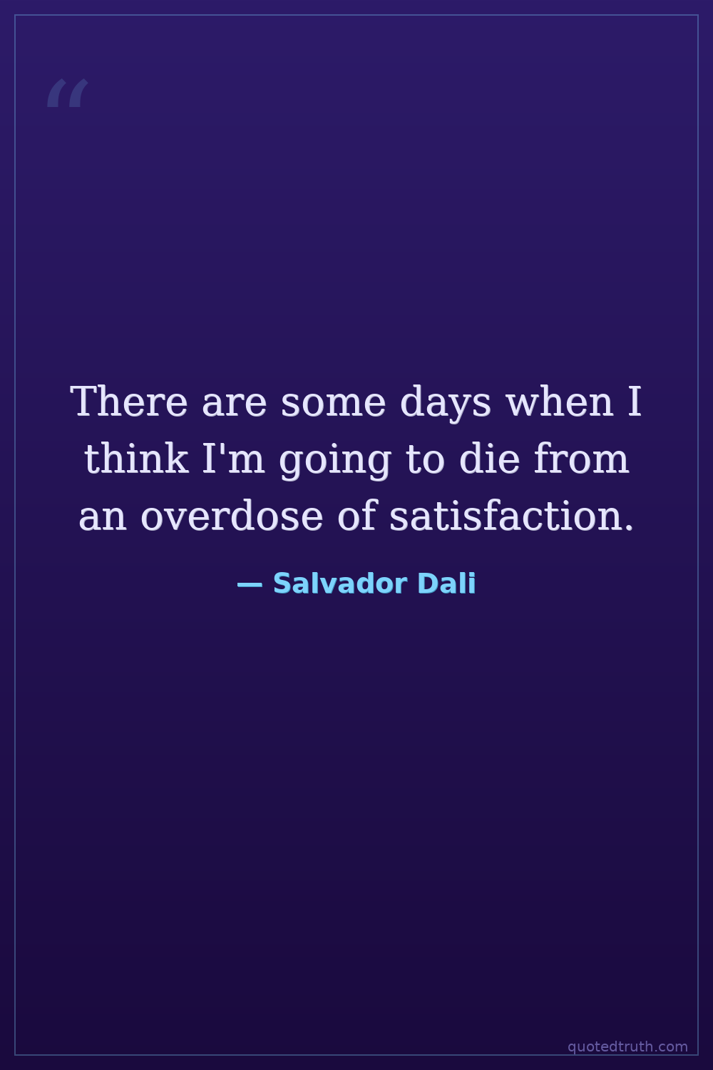 There are some days when I think I'm going to die from an overdose of satisfaction.