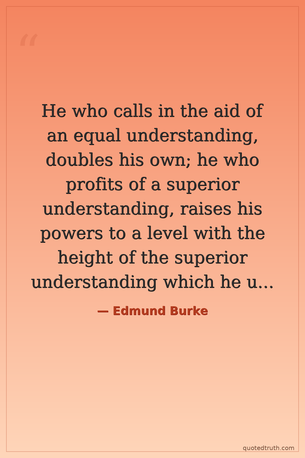 He who calls in the aid of an equal understanding, doubles his own; he who profits of a superior understanding, raises his powers to a level with the height of the superior understanding which he uses.