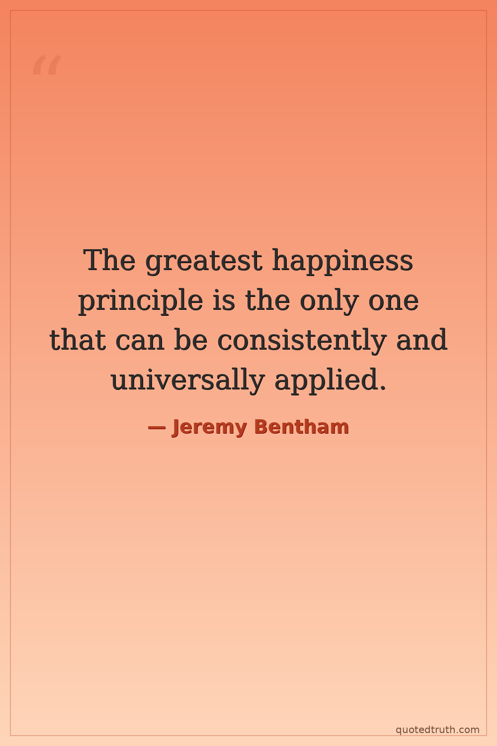 The greatest happiness principle is the only one that can be consistently and universally applied.