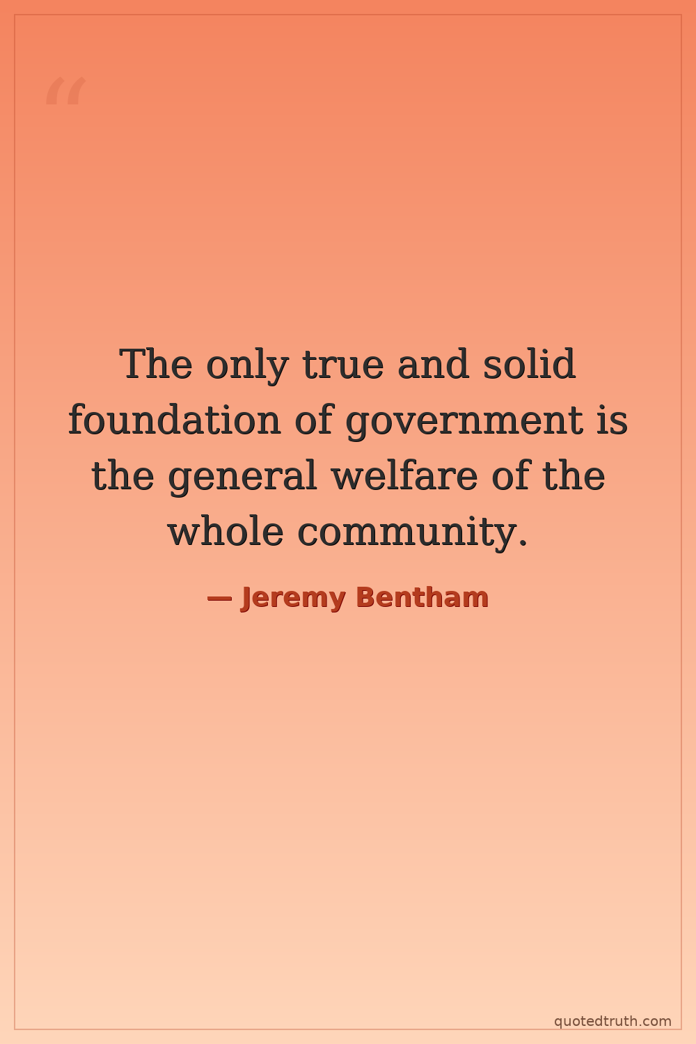 The only true and solid foundation of government is the general welfare of the whole community.