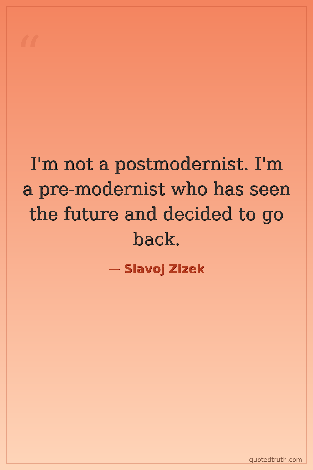 I'm not a postmodernist. I'm a pre-modernist who has seen the future and decided to go back.