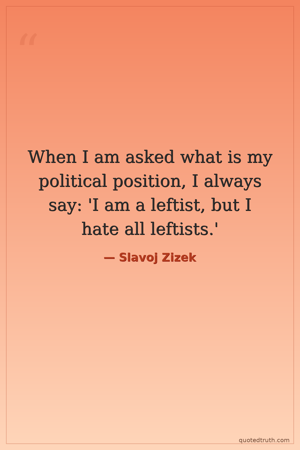 When I am asked what is my political position, I always say: 'I am a leftist, but I hate all leftists.'