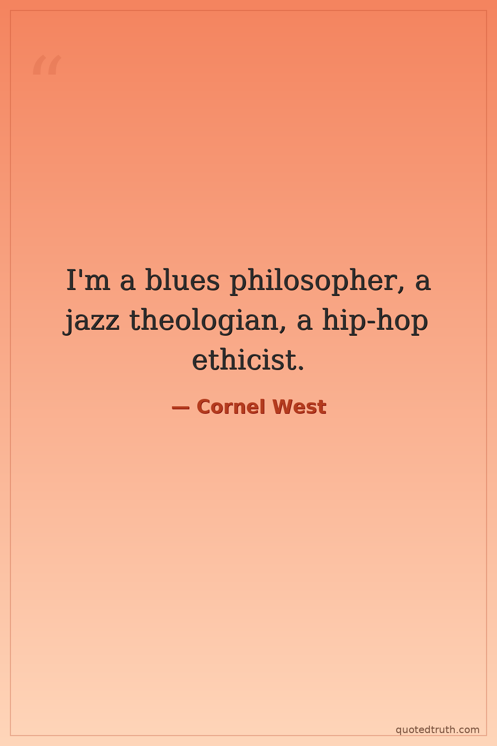 I'm a blues philosopher, a jazz theologian, a hip-hop ethicist.