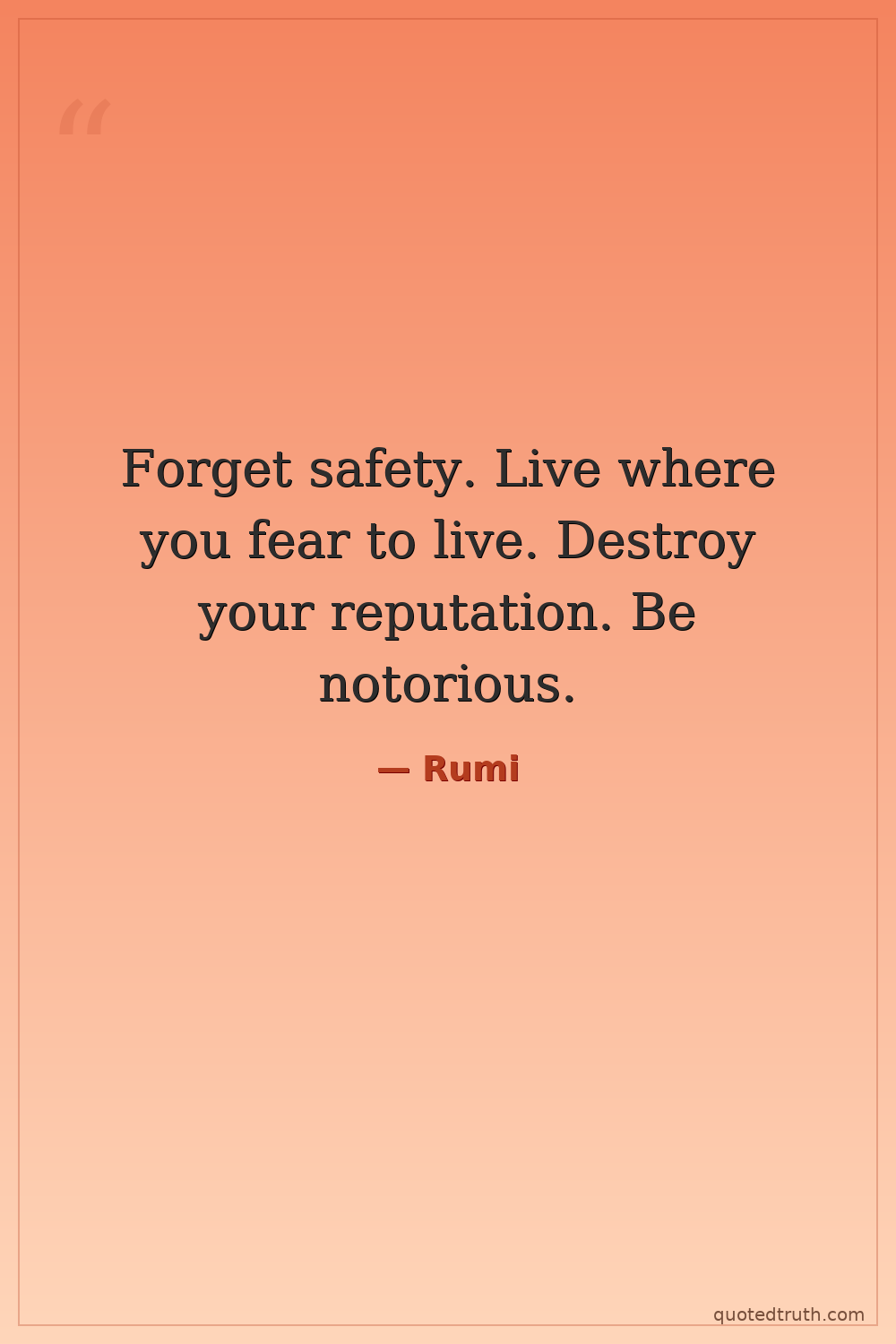 Forget safety. Live where you fear to live. Destroy your reputation. Be notorious.