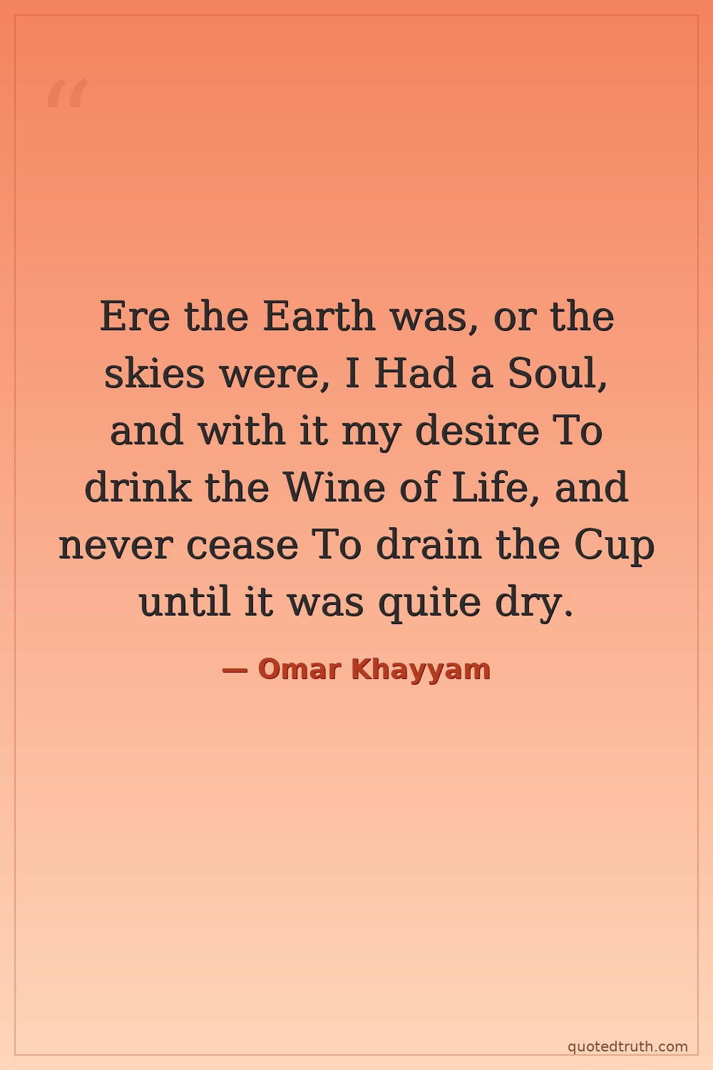 Ere the Earth was, or the skies were, I Had a Soul, and with it my desire To drink the Wine of Life, and never cease To drain the Cup until it was quite dry.