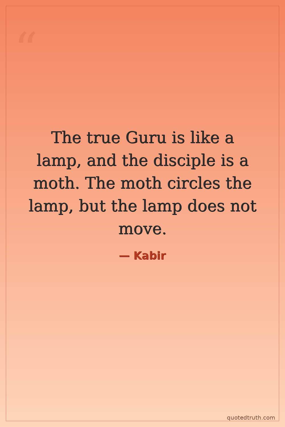 The true Guru is like a lamp, and the disciple is a moth. The moth circles the lamp, but the lamp does not move.