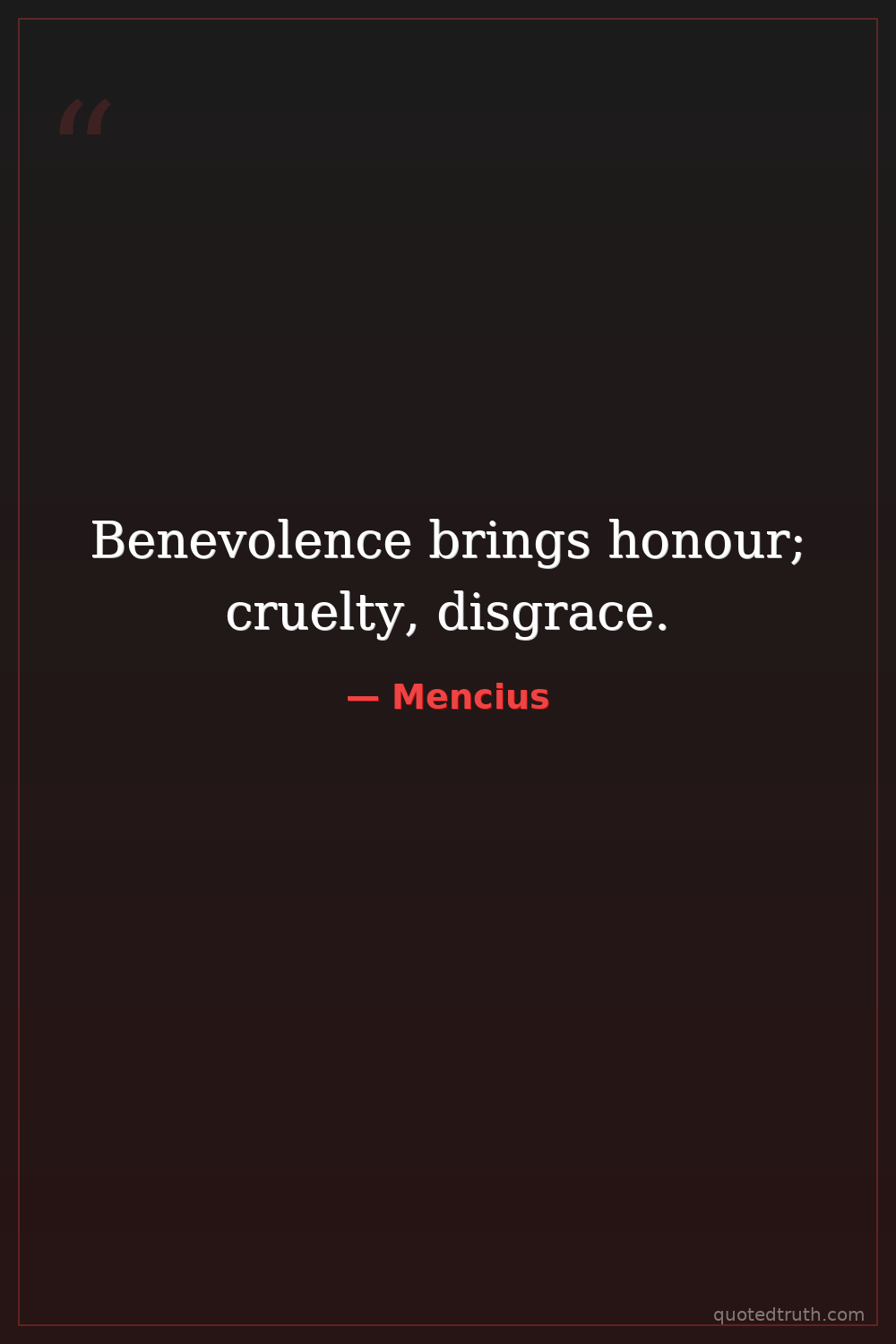Benevolence brings honour; cruelty, disgrace.