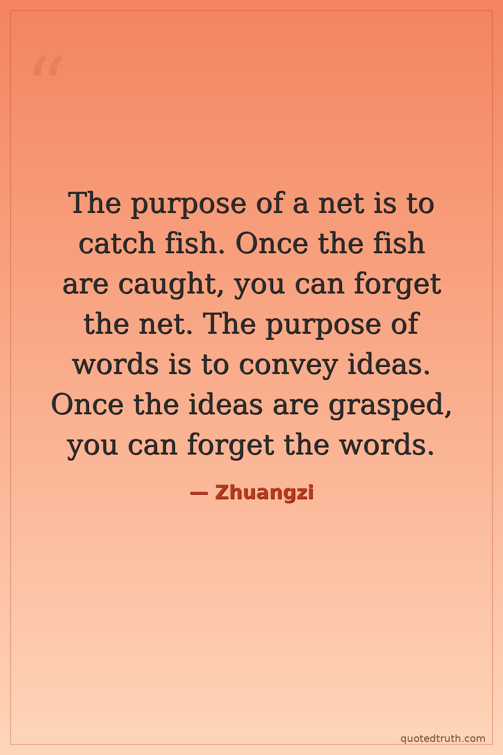 The purpose of a net is to catch fish. Once the fish are caught, you can forget the net. The purpose of words is to convey ideas. Once the ideas are grasped, you can forget the words.