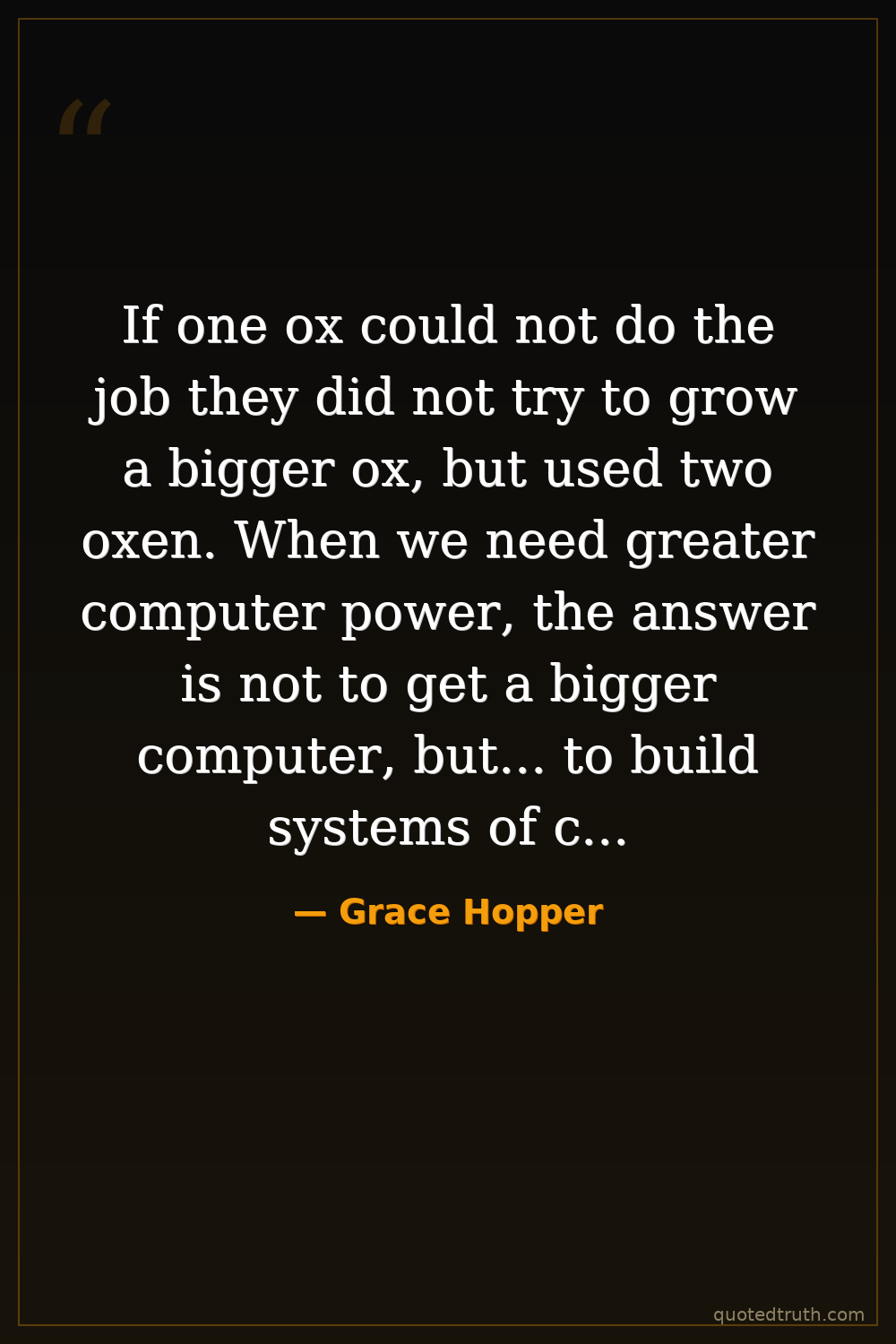If one ox could not do the job they did not try to grow a bigger ox, but used two oxen. When we need greater computer power, the answer is not to get a bigger computer, but... to build systems of computers and operate them in parallel.