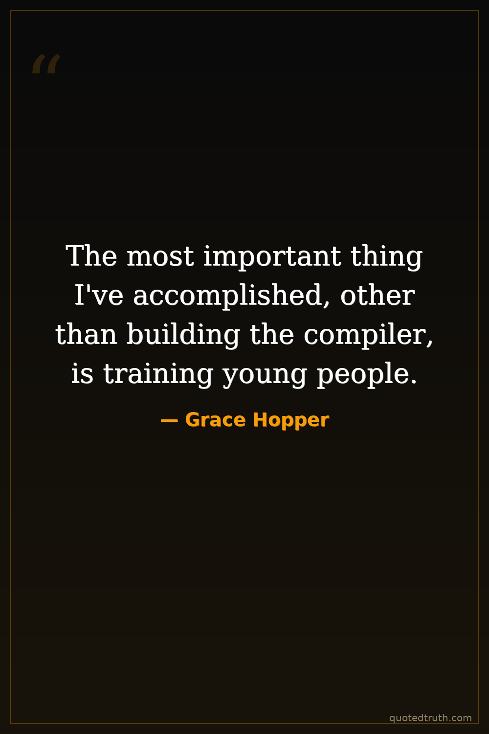 Emphasizing her belief in education and mentorship over her technical innovations.