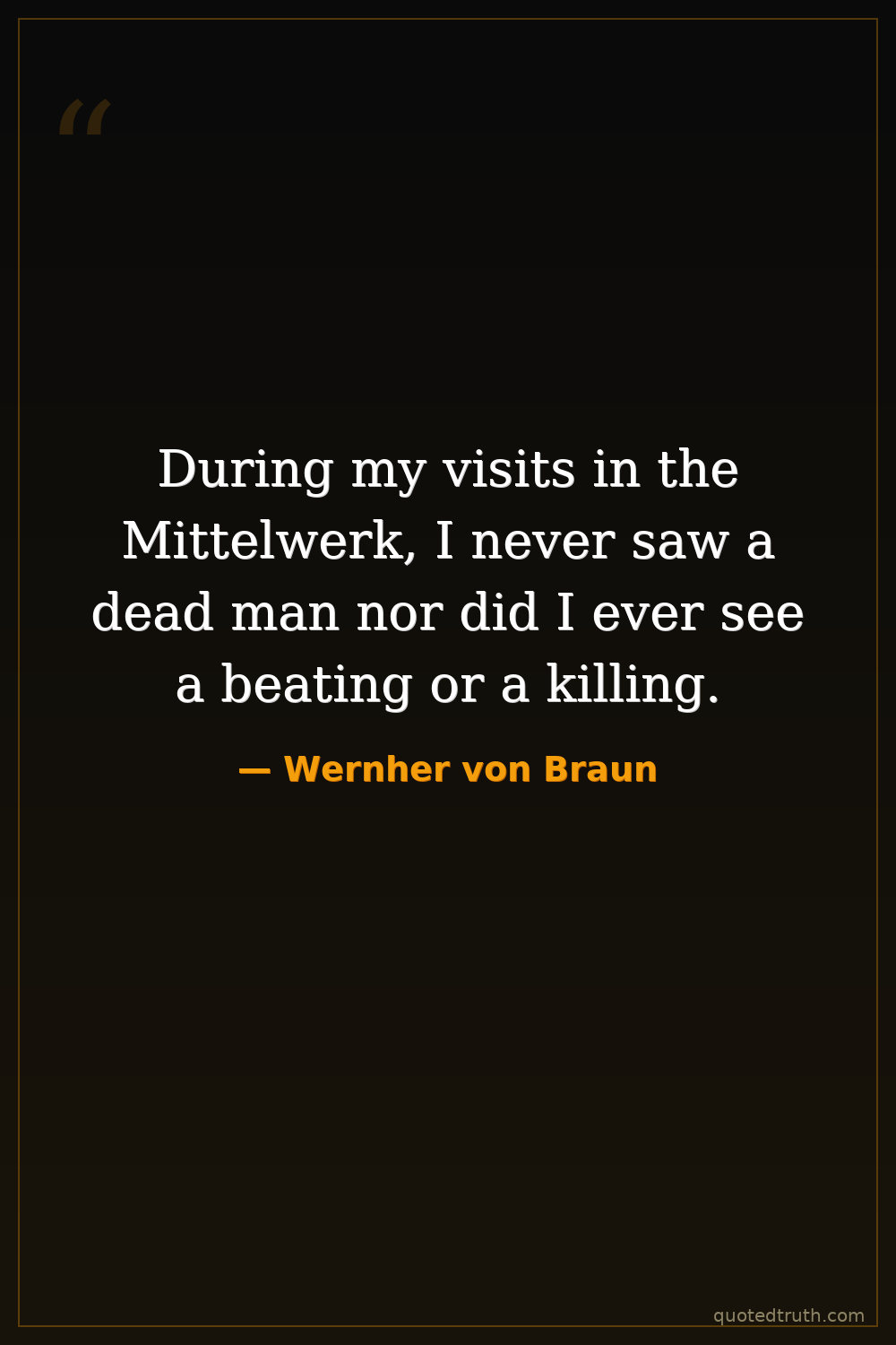 During my visits in the Mittelwerk, I never saw a dead man nor did I ever see a beating or a killing.