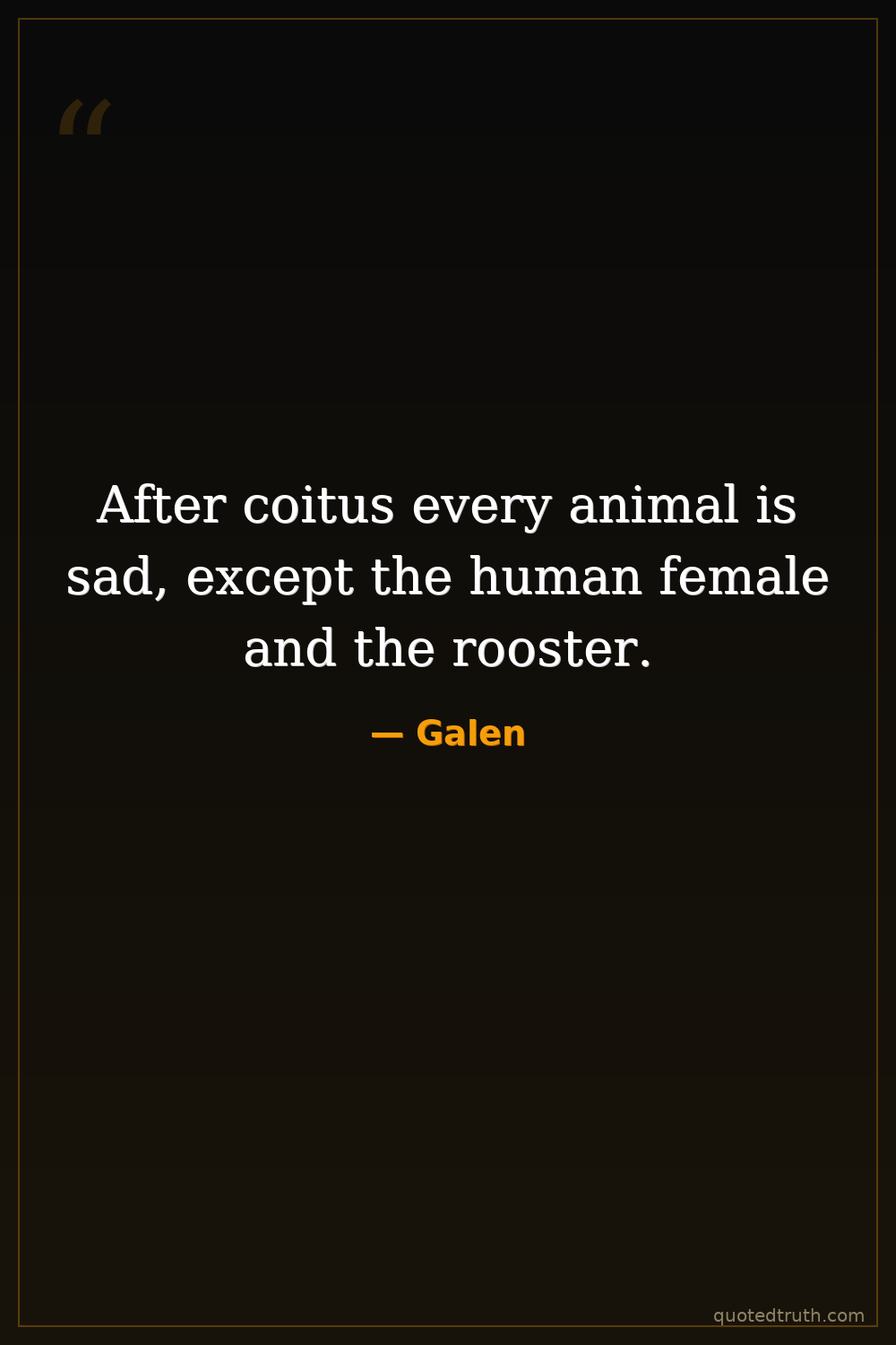 After coitus every animal is sad, except the human female and the rooster.