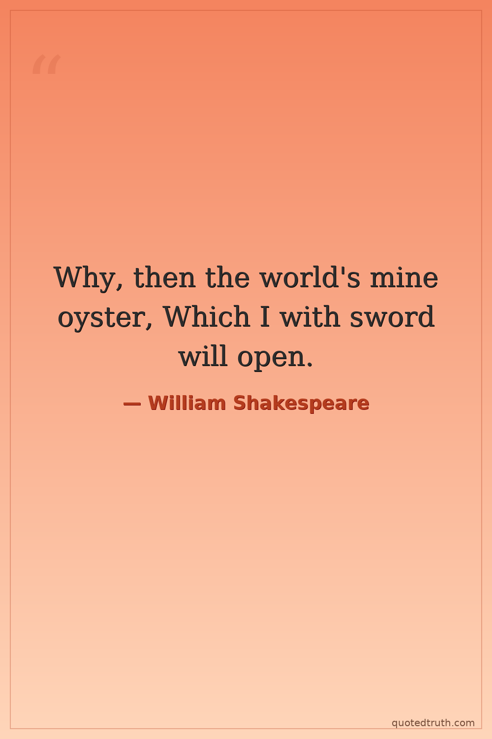Why, then the world's mine oyster, Which I with sword will open.