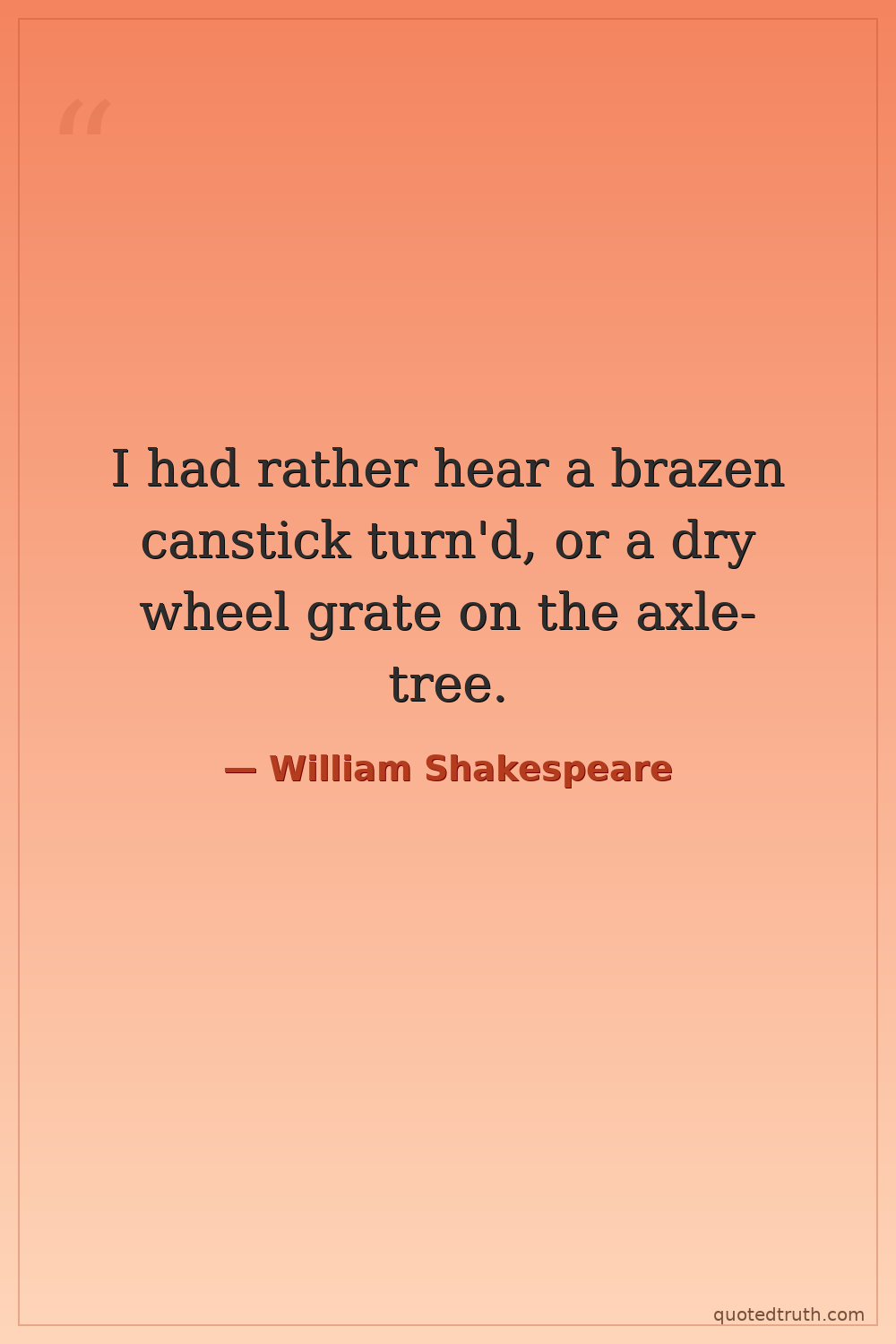 I had rather hear a brazen canstick turn'd, or a dry wheel grate on the axle-tree.