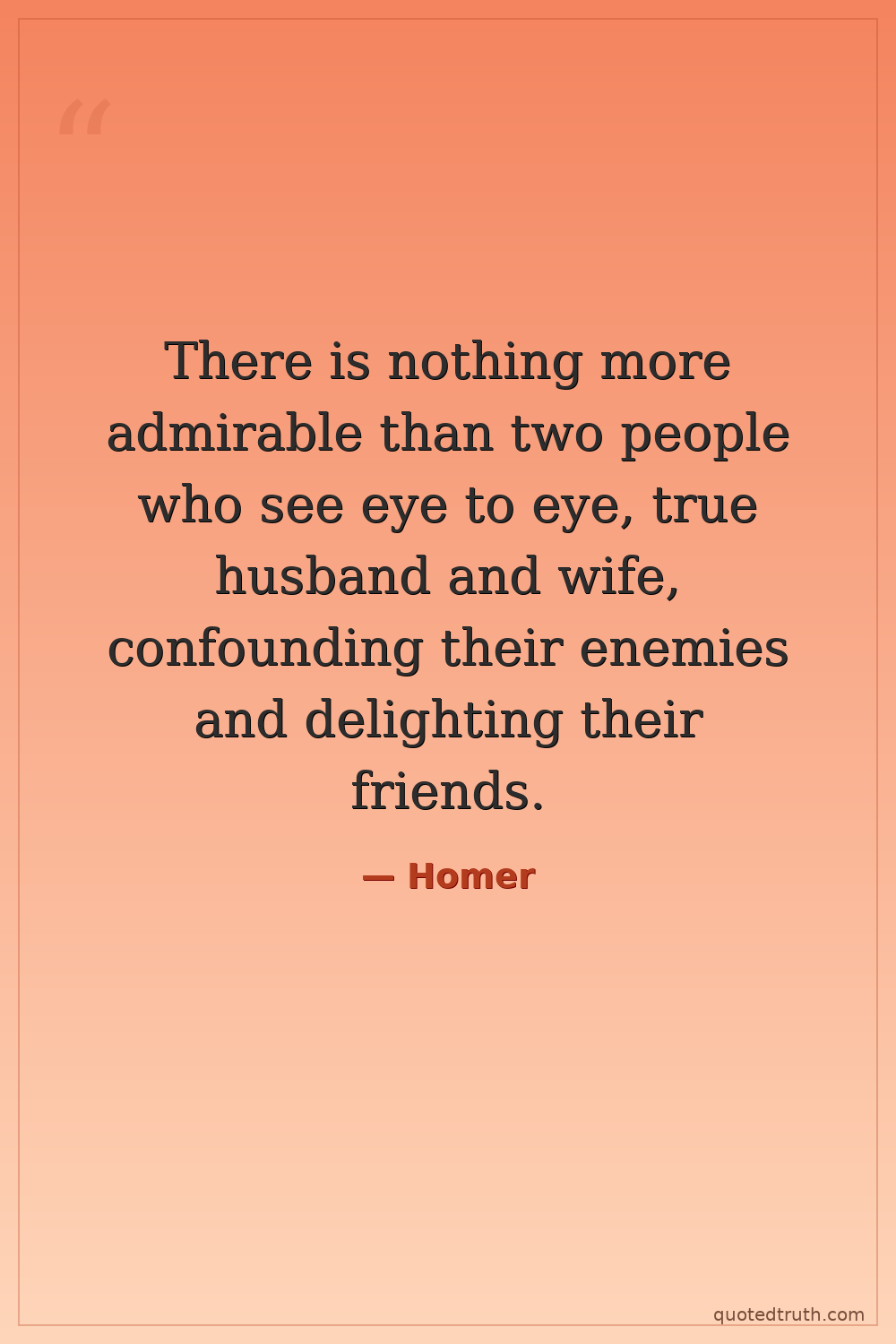 There is nothing more admirable than two people who see eye to eye, true husband and wife, confounding their enemies and delighting their friends.