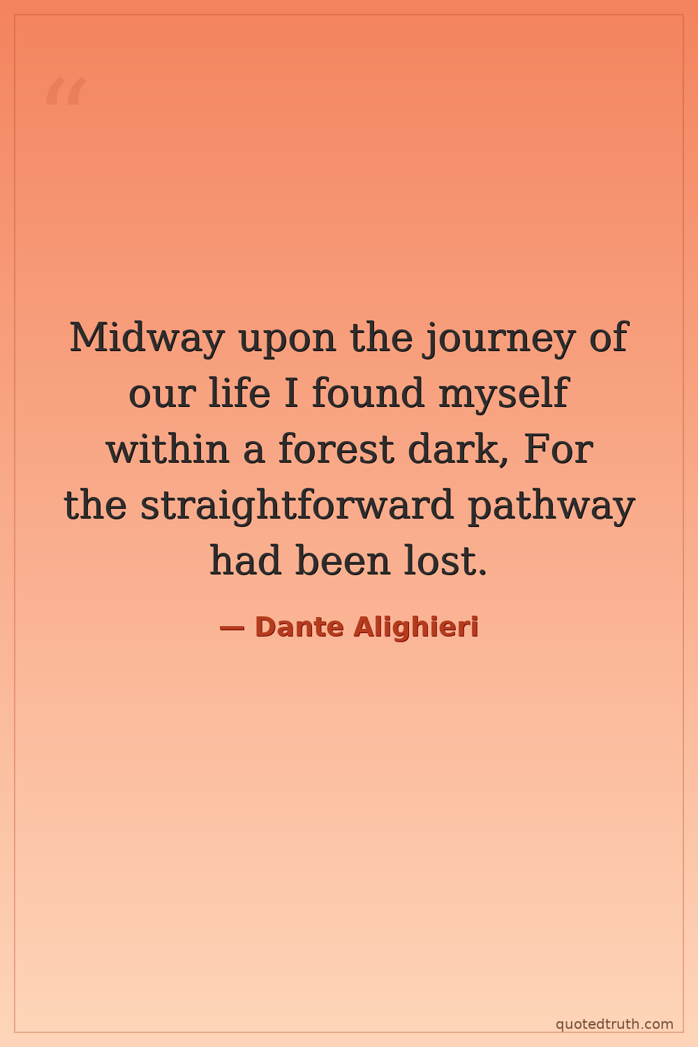 Midway upon the journey of our life I found myself within a forest dark, For the straightforward pathway had been lost.