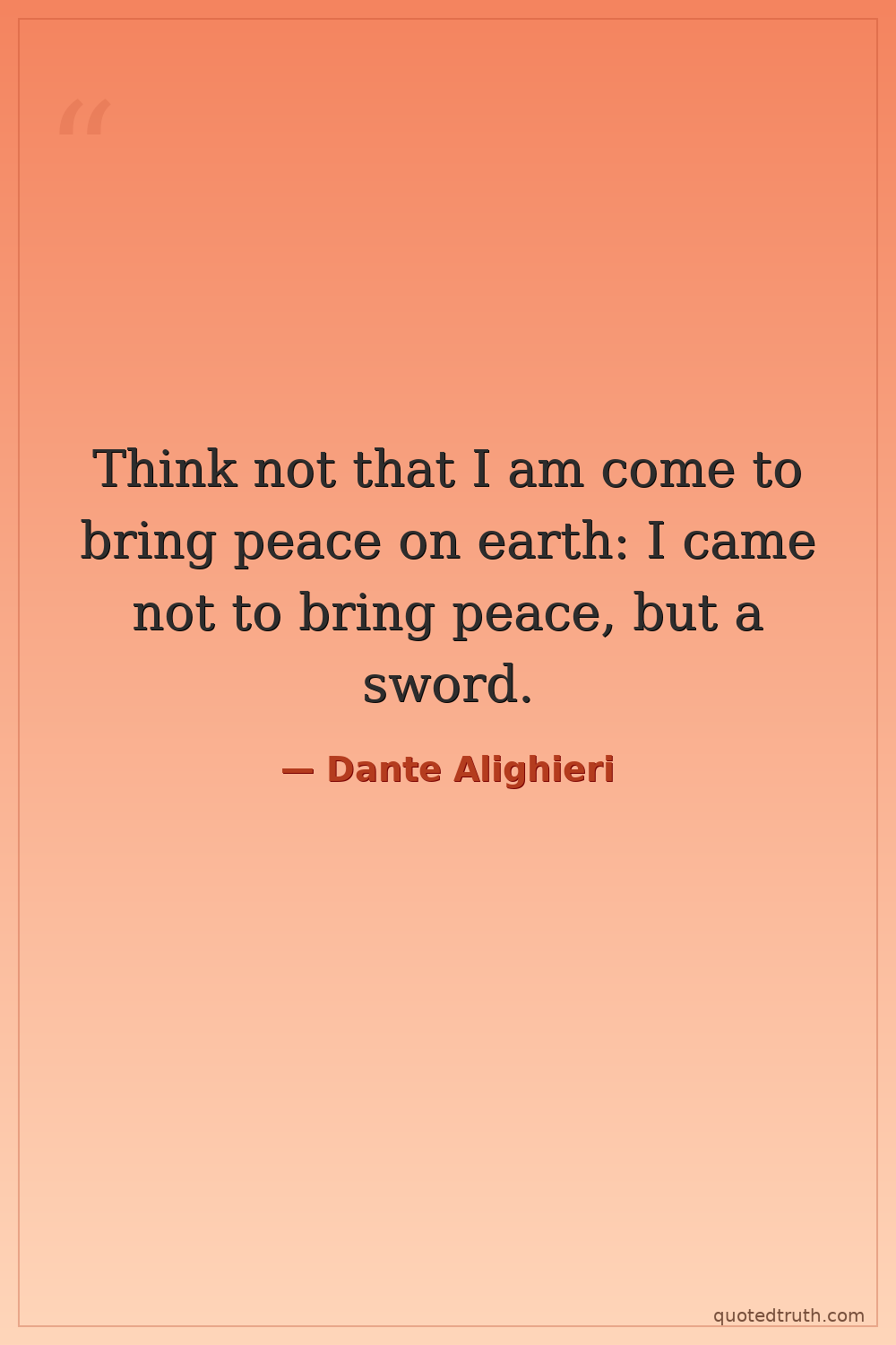 Attributed, a misattribution or misremembering of Matthew 10:34, not Dante's own words.