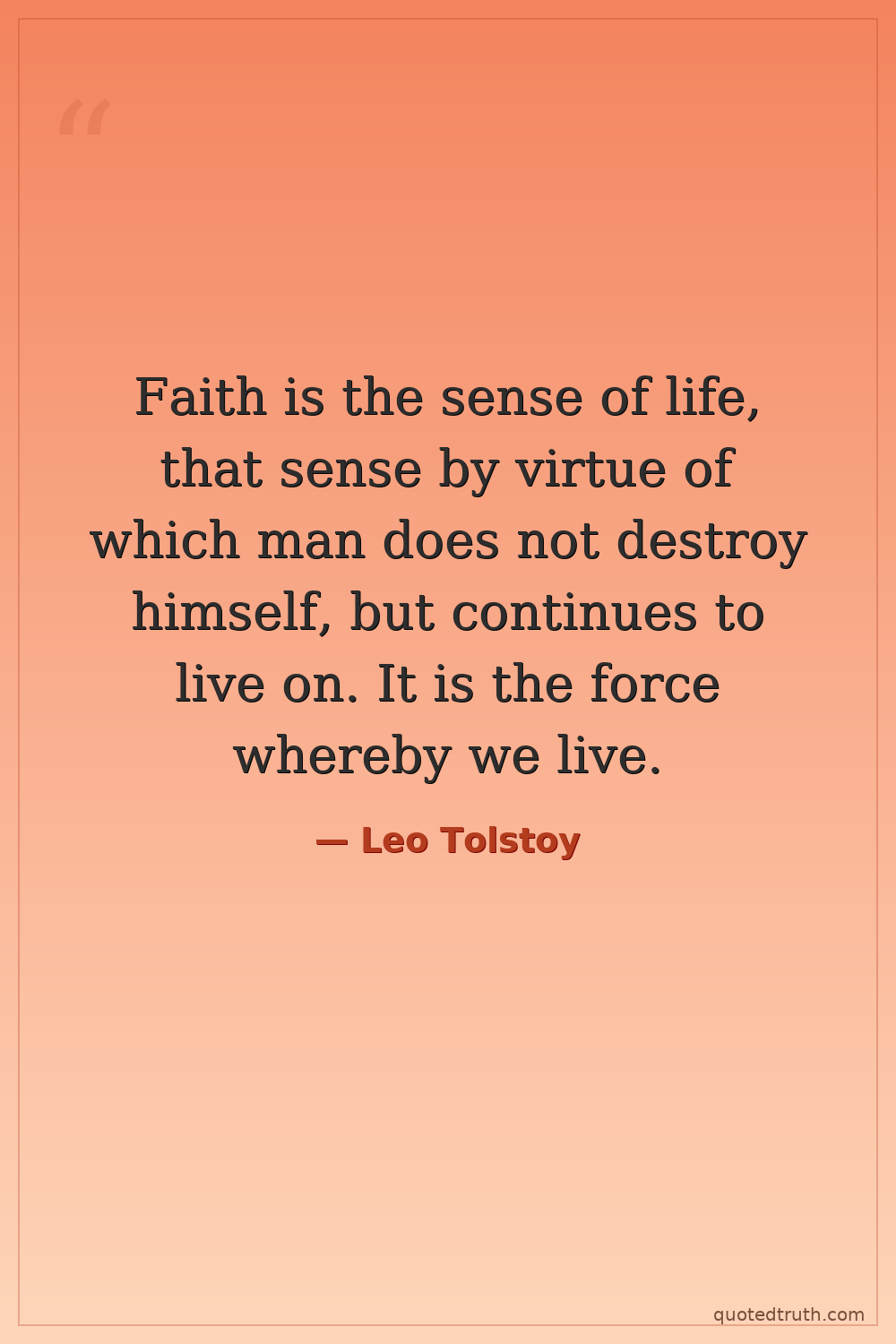 Faith is the sense of life, that sense by virtue of which man does not destroy himself, but continues to live on. It is the force whereby we live.