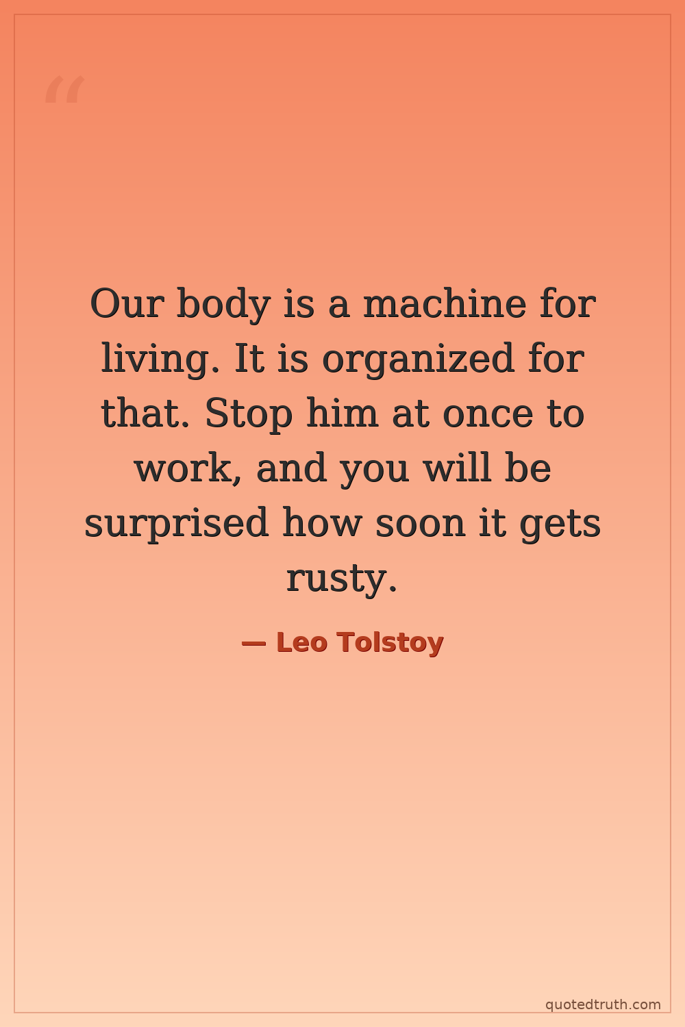 Our body is a machine for living. It is organized for that. Stop him at once to work, and you will be surprised how soon it gets rusty.