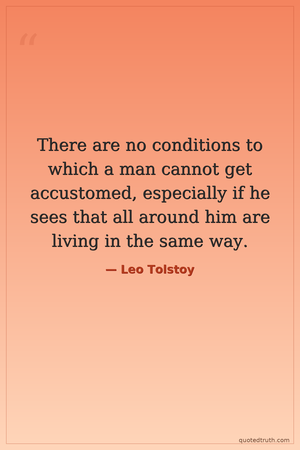 There are no conditions to which a man cannot get accustomed, especially if he sees that all around him are living in the same way.