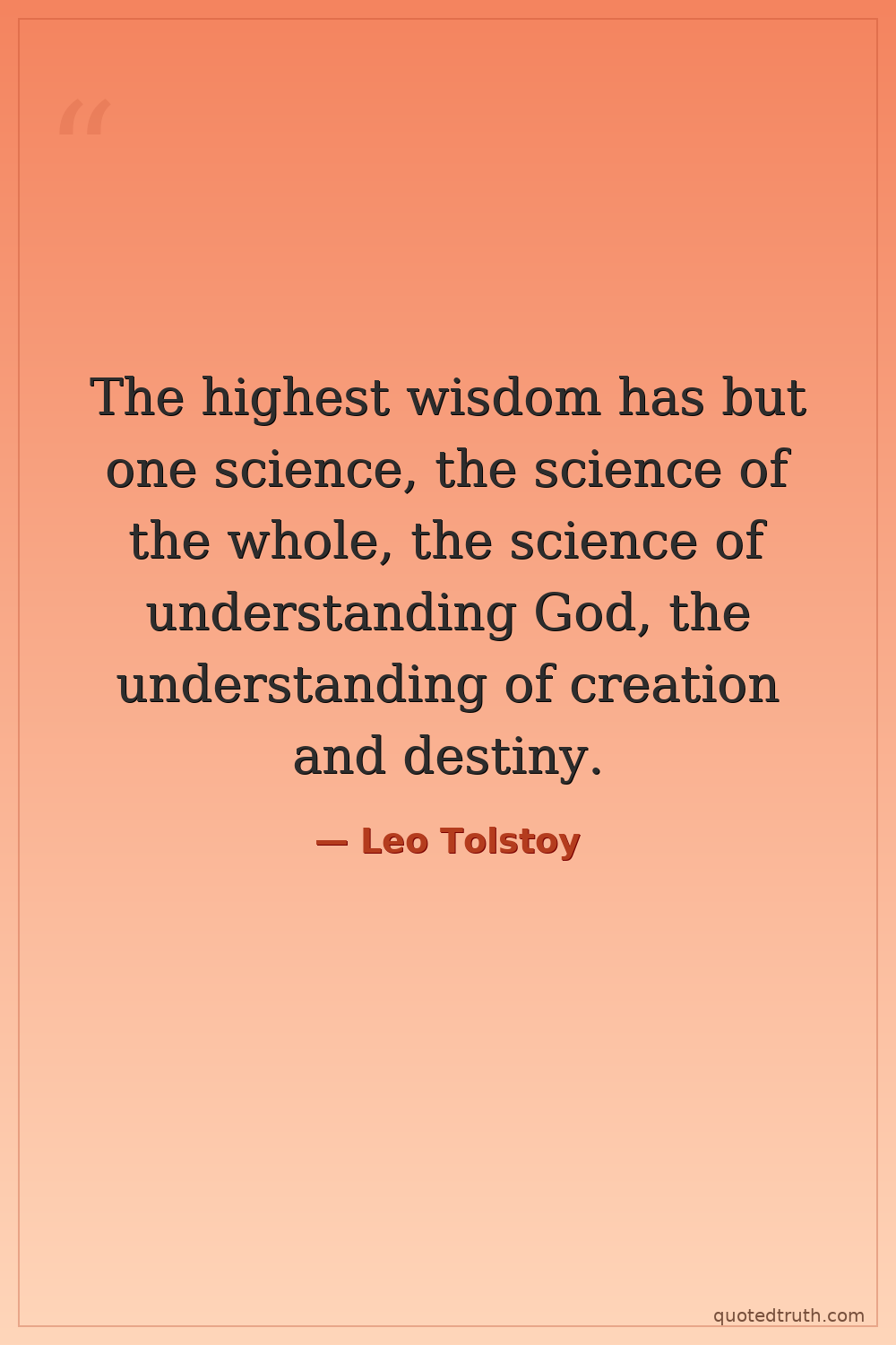 The highest wisdom has but one science, the science of the whole, the science of understanding God, the understanding of creation and destiny.