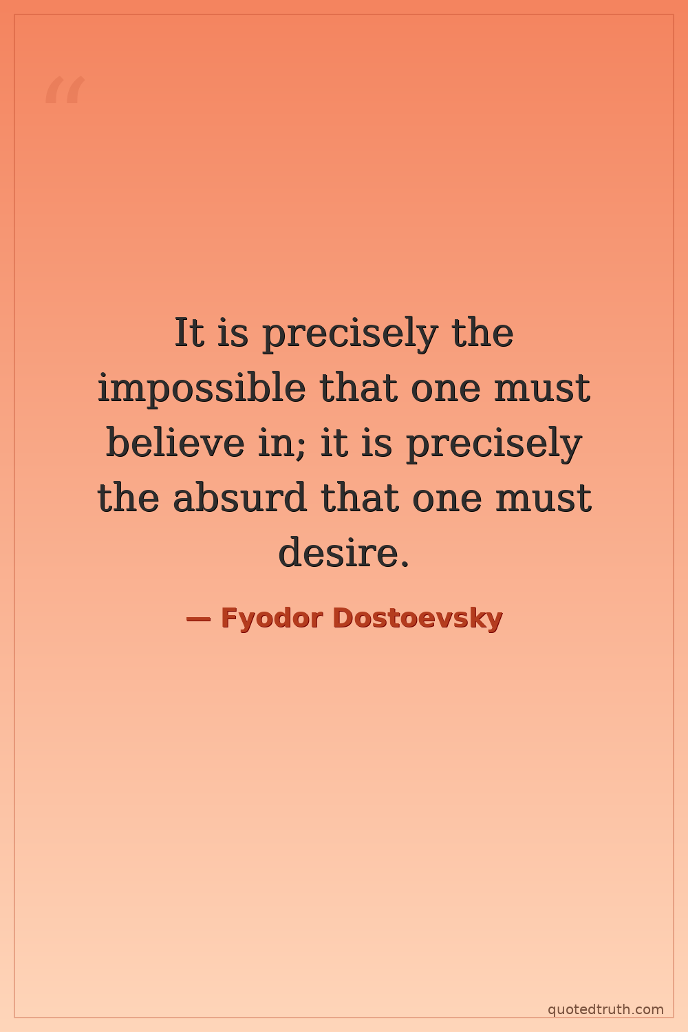 It is precisely the impossible that one must believe in; it is precisely the absurd that one must desire.