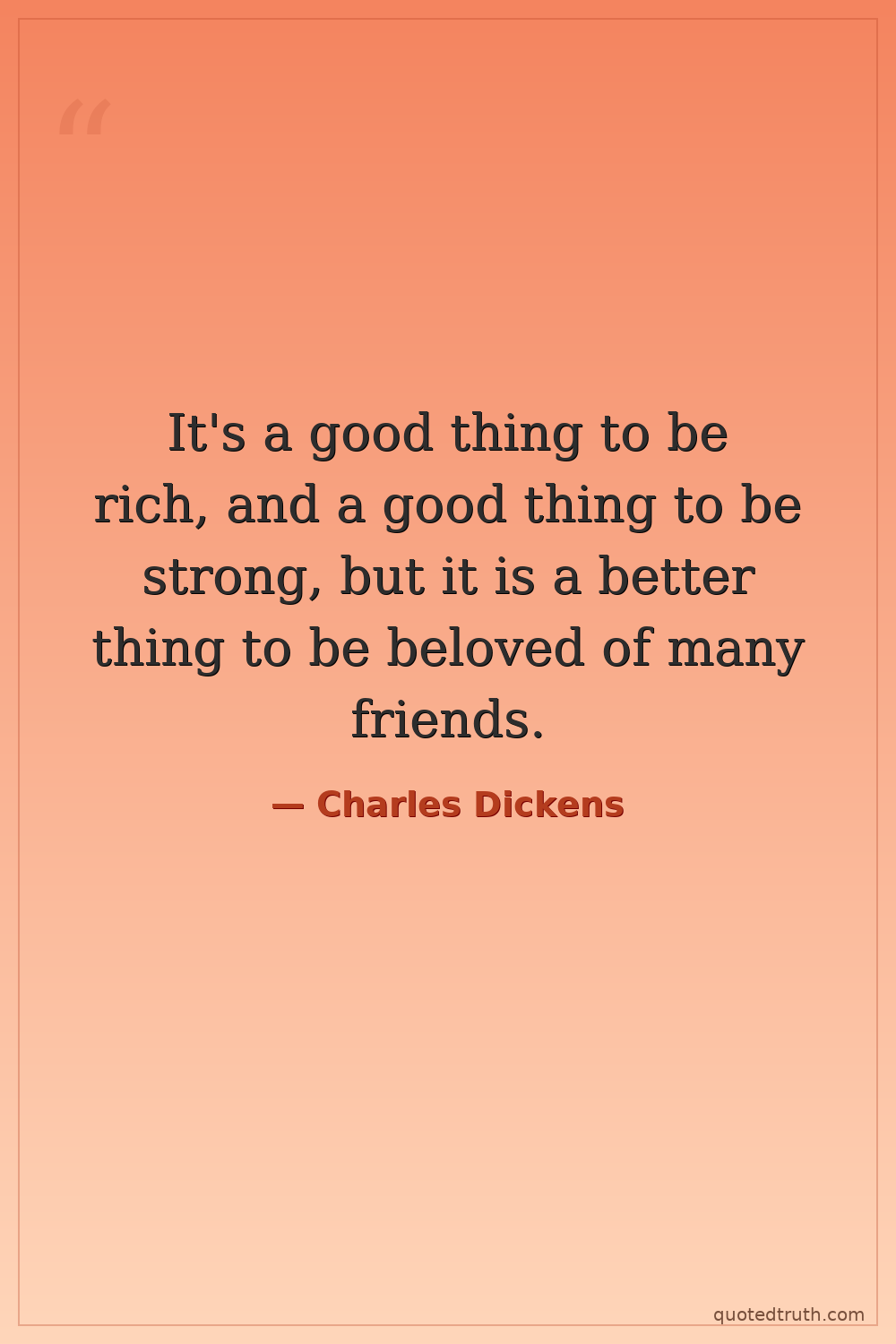 It's a good thing to be rich, and a good thing to be strong, but it is a better thing to be beloved of many friends.