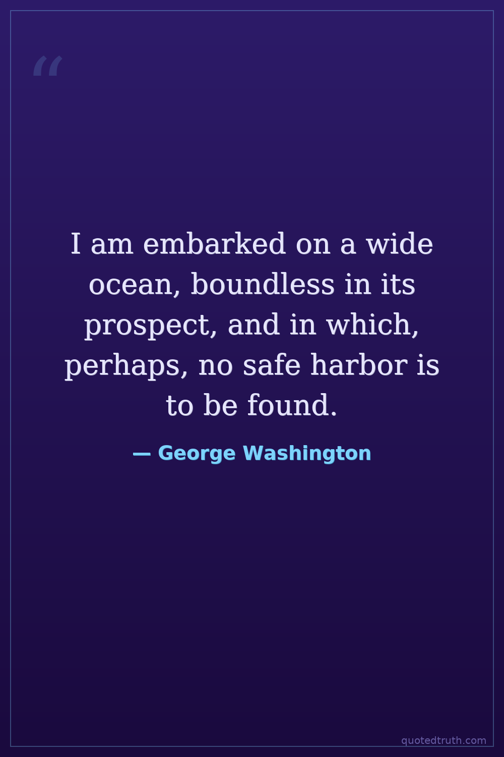 I am embarked on a wide ocean, boundless in its prospect, and in which, perhaps, no safe harbor is to be found.