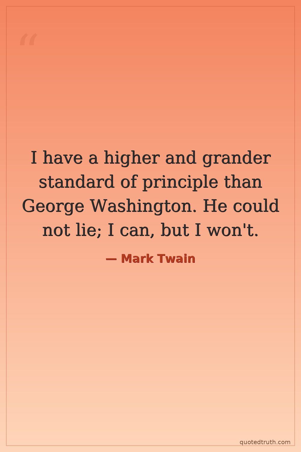 I have a higher and grander standard of principle than George Washington. He could not lie; I can, but I won't.
