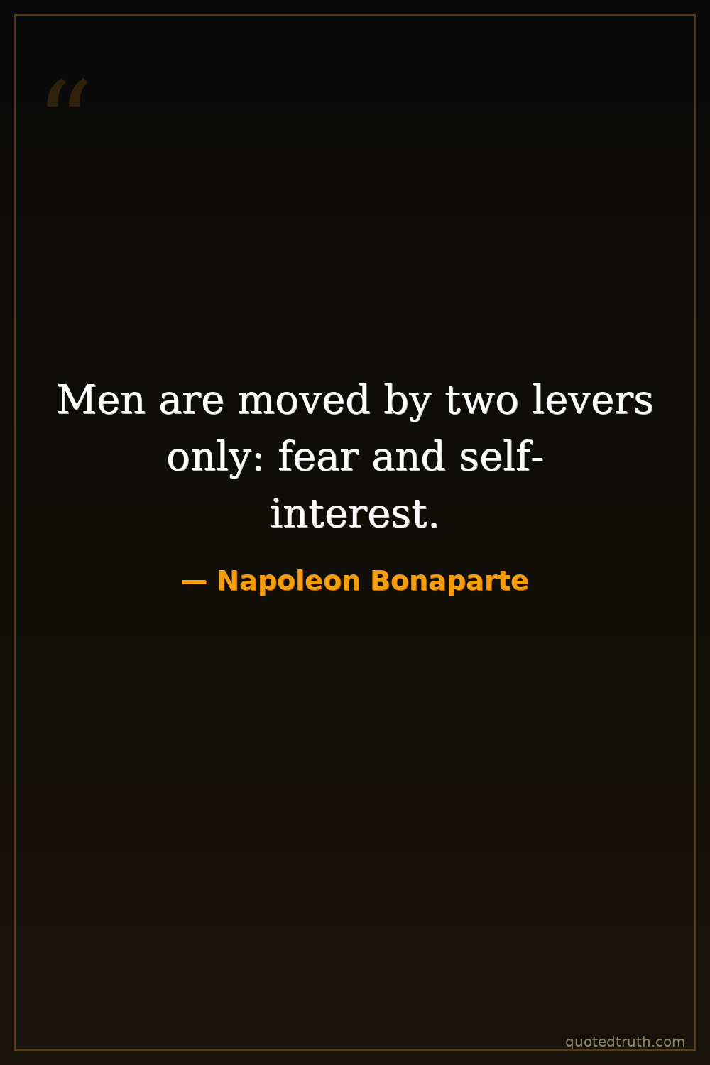 Men are moved by two levers only: fear and self-interest.