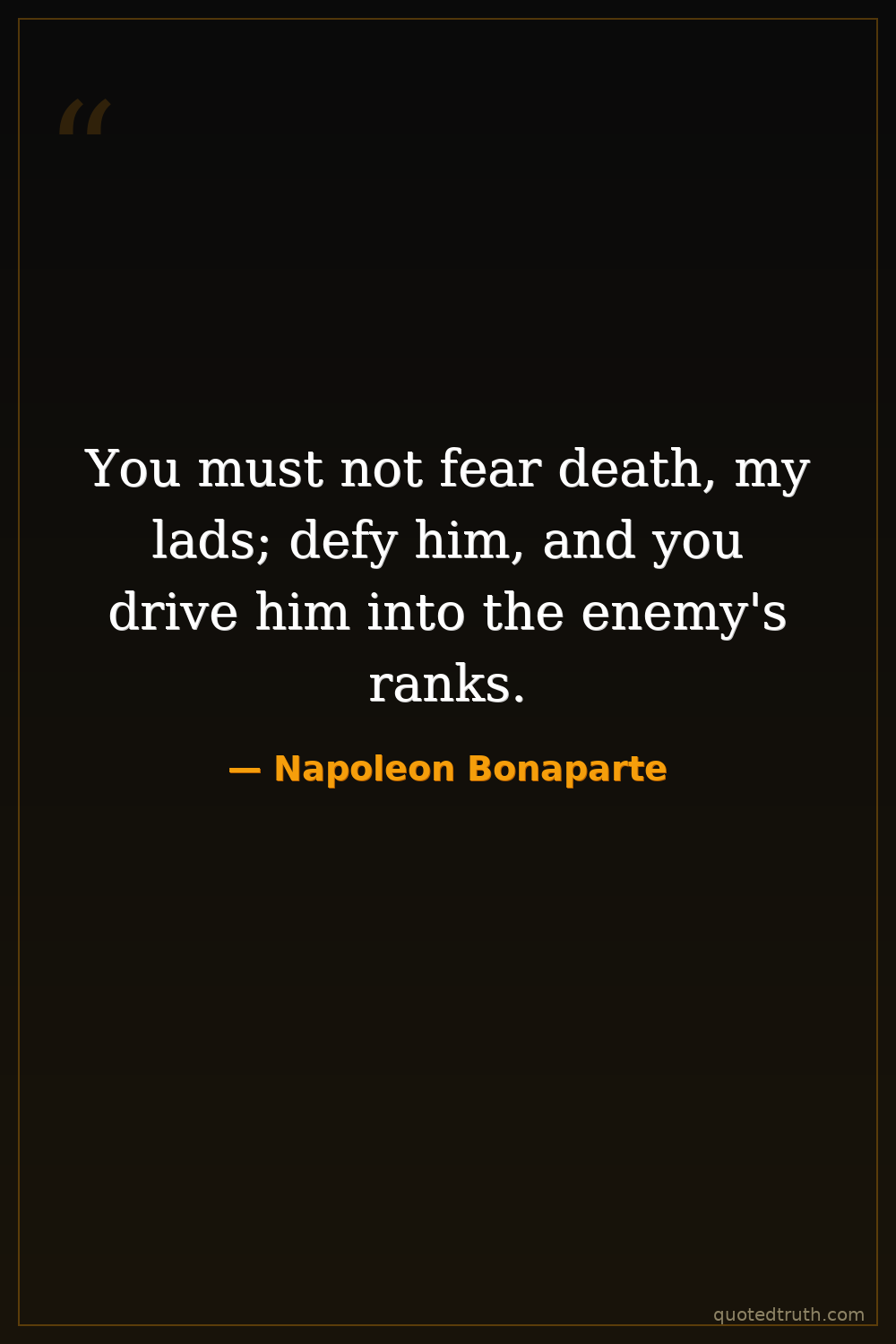 You must not fear death, my lads; defy him, and you drive him into the enemy's ranks.