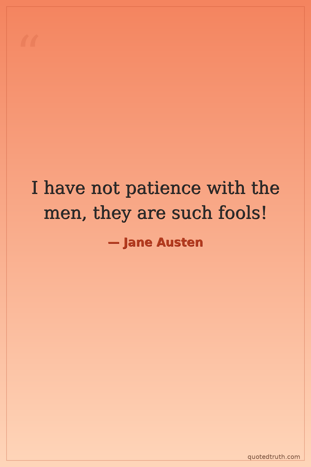 I have not patience with the men, they are such fools!