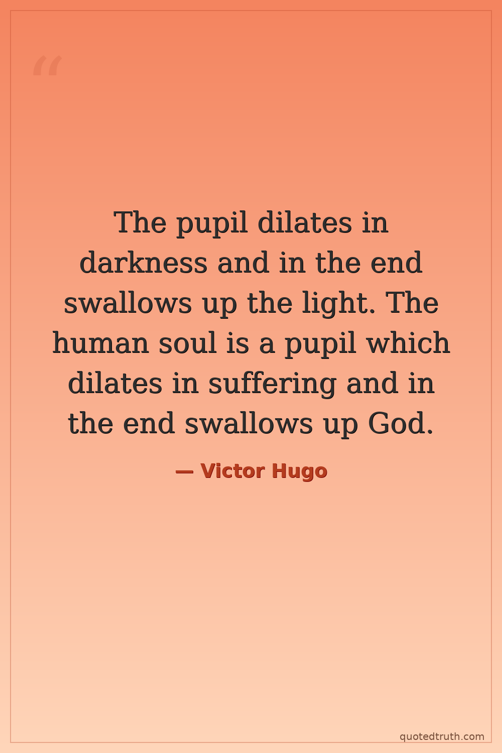 The pupil dilates in darkness and in the end swallows up the light. The human soul is a pupil which dilates in suffering and in the end swallows up God.