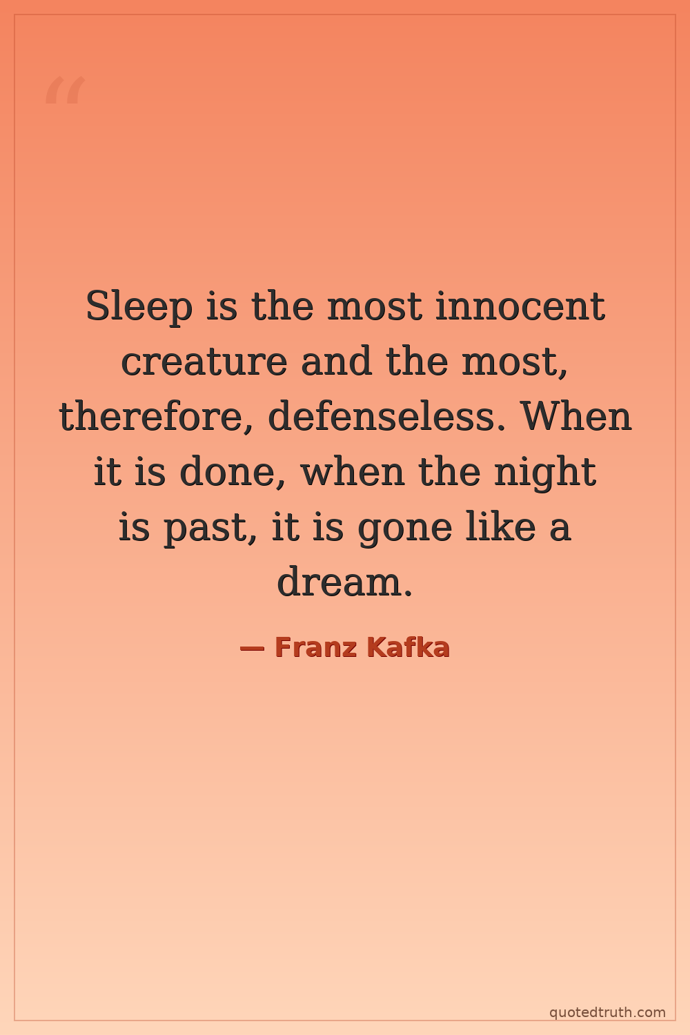 Sleep is the most innocent creature and the most, therefore, defenseless. When it is done, when the night is past, it is gone like a dream.