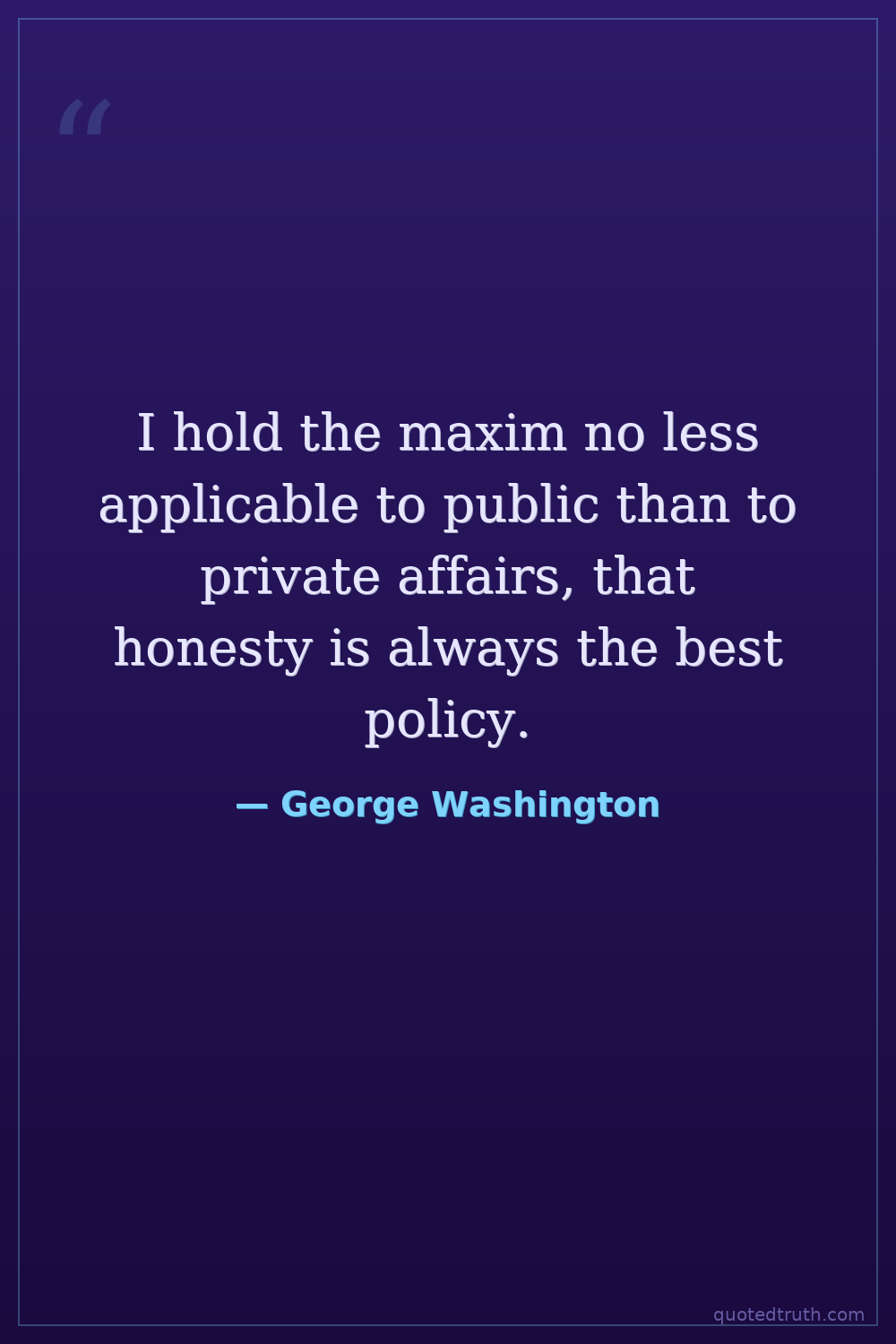 I hold the maxim no less applicable to public than to private affairs, that honesty is always the best policy.