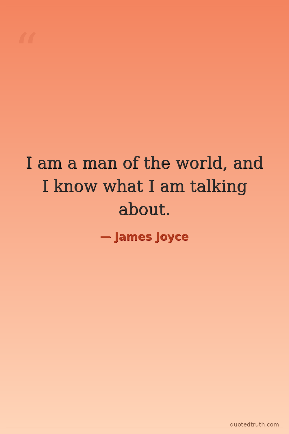I am a man of the world, and I know what I am talking about.