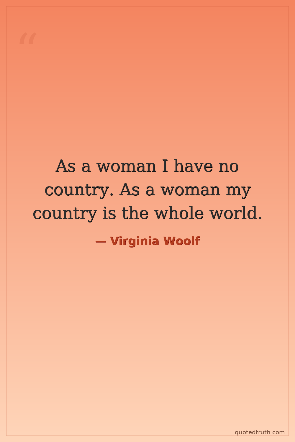 As a woman I have no country. As a woman my country is the whole world.
